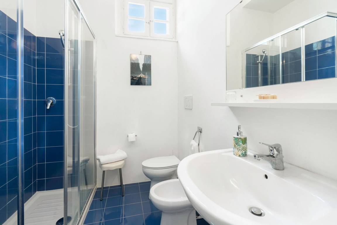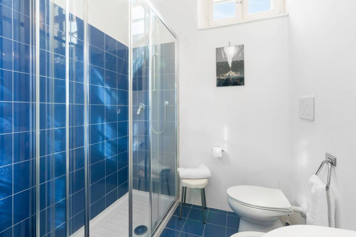 Badezimmer 1: Waschbecken, WC, Bidet, Dusche, Fön, Fliegengitter.