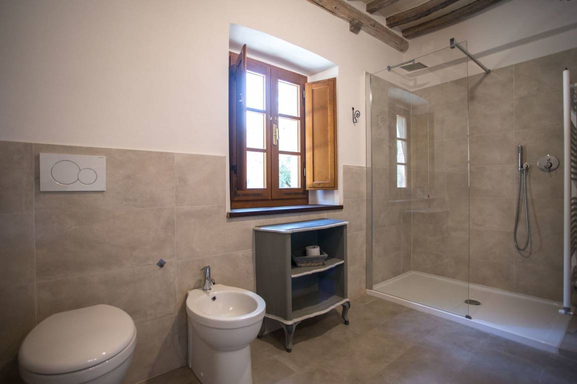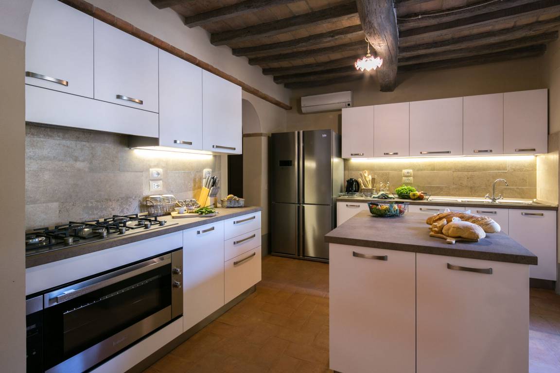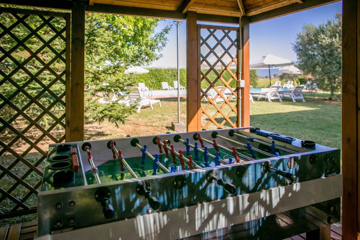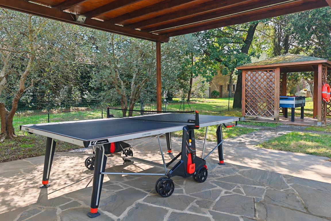 „This house is great. We were a group of 3 families which were easily housed with lots of space. Plenty of rooms and bathrooms for bigger groups. Everything promised by the owner was delivered and he was very helpful in every way. The pool area is big and clean. In the pool area you have a ping pong table, fussball table and swings for the youngest people. The location is great with short drives to great towns such as Cortana. I give this property my highest recommendation and if you are looking for a true Tuscany experience, this is it.“
