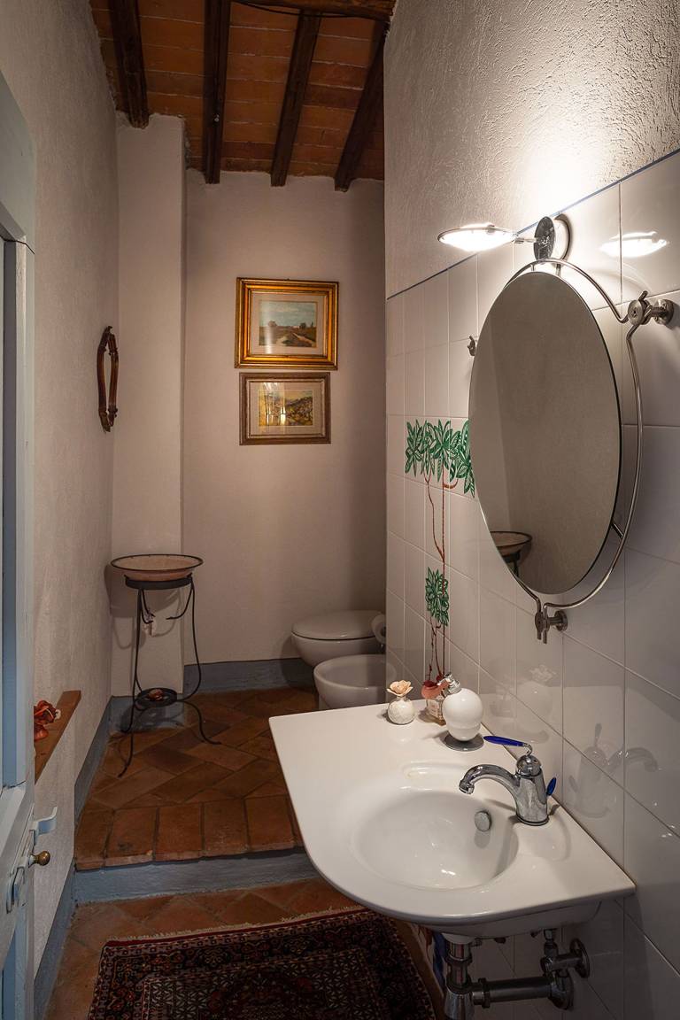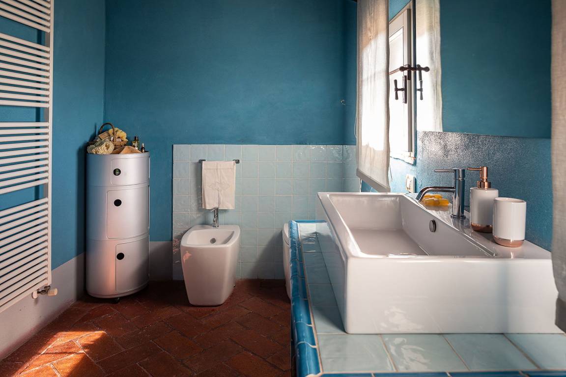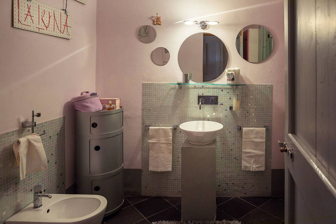 Badezimmer 1: Waschbecken, WC, Bidet.