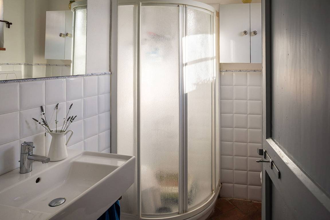 Badezimmer 1: Waschbecken, WC, Bidet, Dusche.