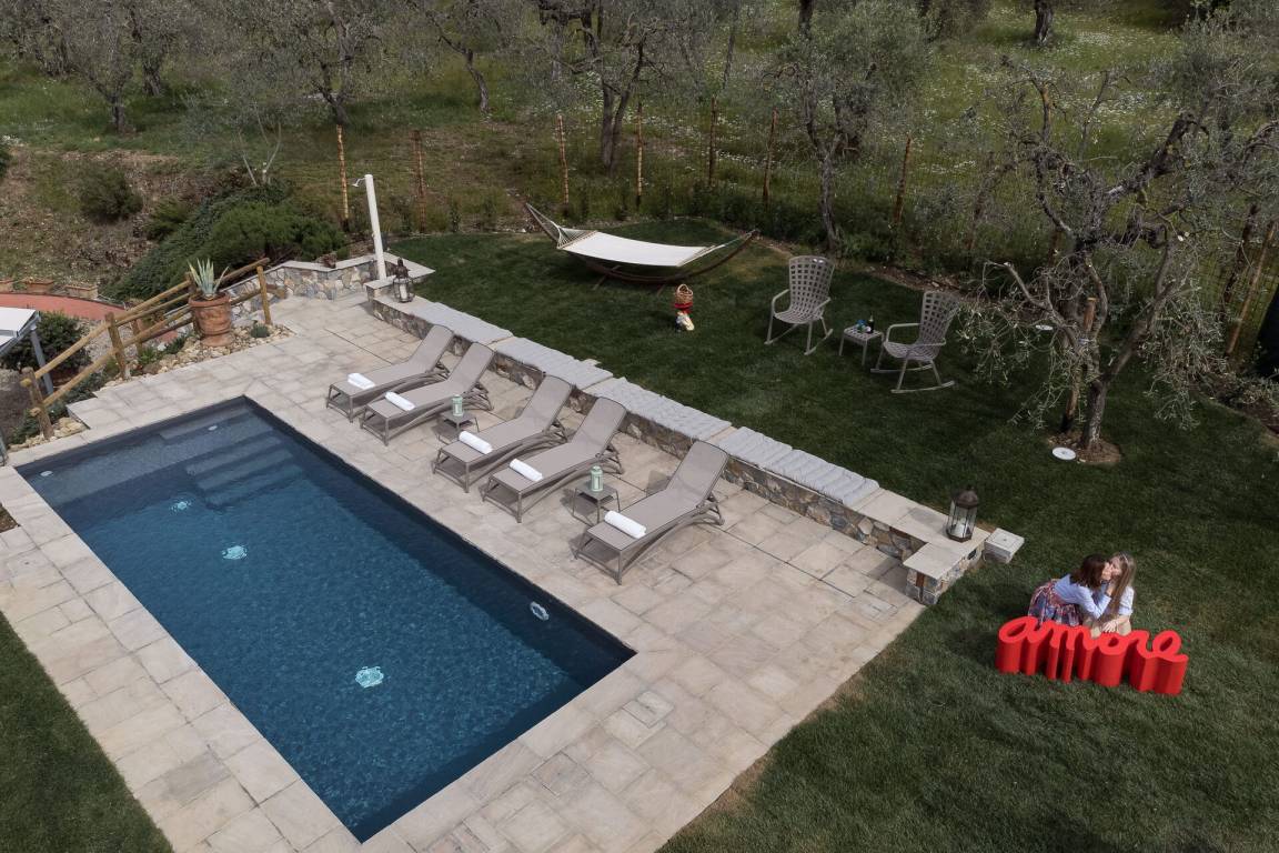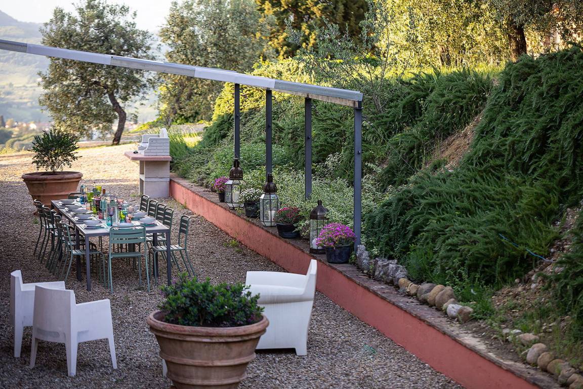 Garten (1500 m²): Schwimmbad (privat, Breite: 3.3m, Länge: 8.3m, max. Tiefe: 1.4m, min. Tiefe: 1.4m, Tiefe: 1.4m, Außen), Dusche, WiFi Internet, Grill, Außenbereich für das Essen im Freien, Esstisch (Personen: 12), zwei Pavillons, Gartenmöbel, Sonnenliege.