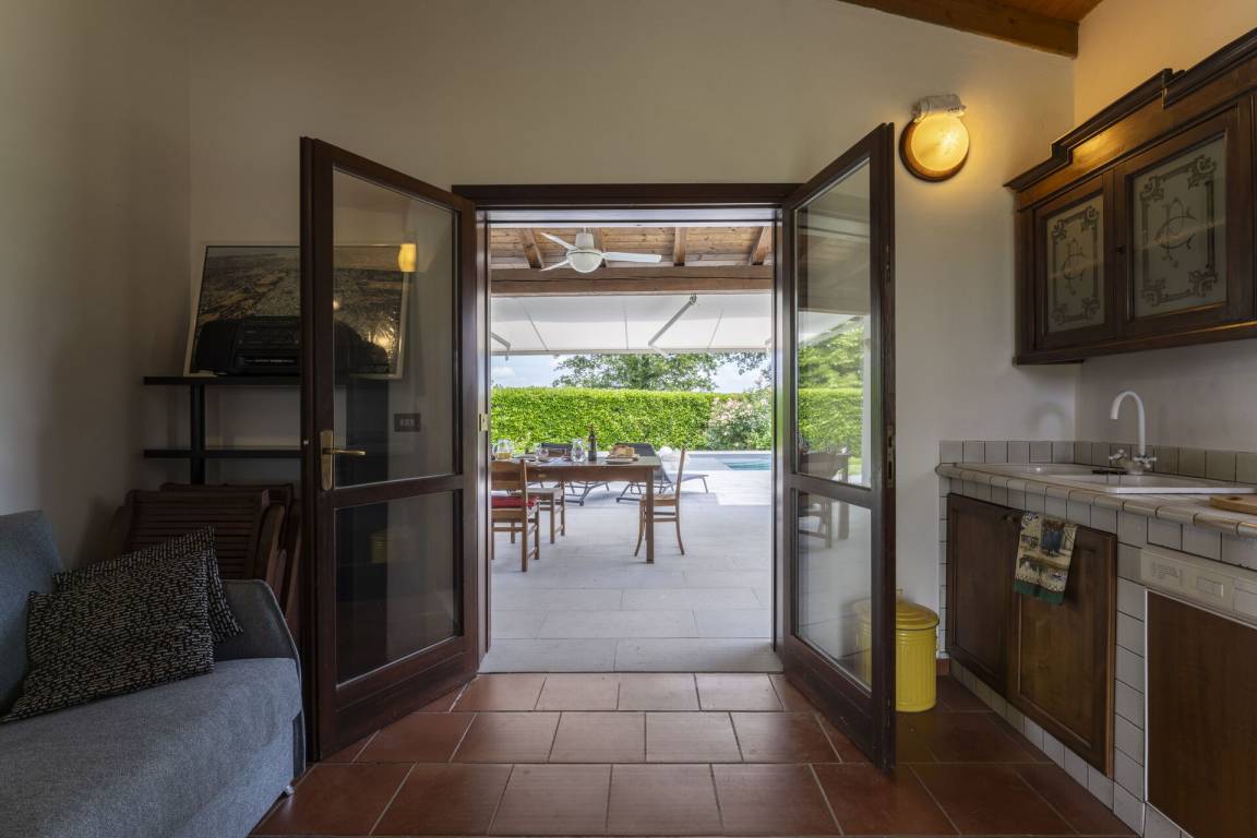 Esszimmer: Esstisch, Klimaanlage, WiFi Internet, Ausgang auf den Garten.