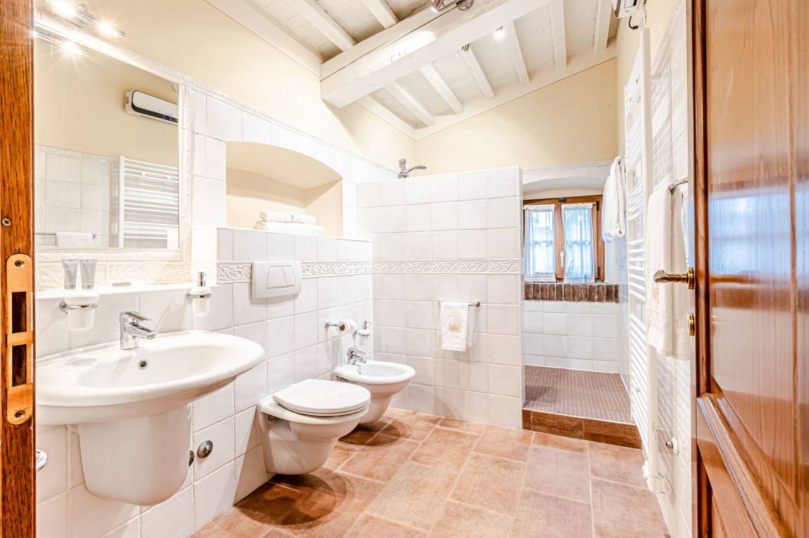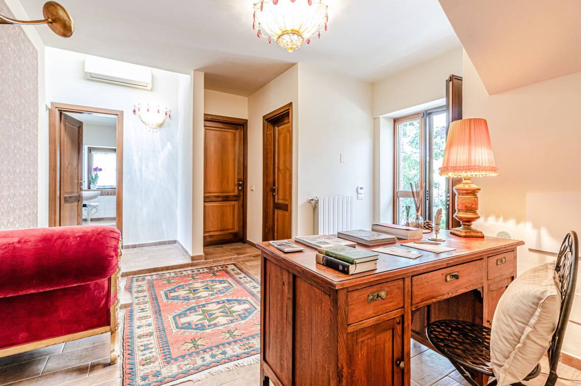 Diese Unterkunft besteht aus zwei separaten Apartments mit einer kombinierten Kapazität von 10 Gästen auf 5 Schlafzimmer und 5 Badezimmer verteilt. Das Erdgeschoss-Apartment erstreckt sich über 200 Quadratmeter und verfügt über 3 Doppelschlafzimmer sowie 3 Badezimmer, von denen eines mit einer Hydrodusche ausgestattet ist. Auf dieser Ebene befinden sich außerdem ein Studio, ein geräumiges Wohnzimmer mit Kamin und ein Essbereich mit einem Tisch für 10 Personen, der sich in einen Billardtisch verwandeln lässt. Im ersten Stock finden Sie 2 Junior-Suiten mit jeweils 50 Quadratmetern und Doppelschlafzimmern. Eine dieser Suiten verfügt über eine kleine Küchenzeile mit einem Tisch für 4 Personen, einem Kühlschrank, einer Espressomaschine, einer Filterkaffeemaschine, einem Toaster und einer Orangenpresse. Jede Junior-Suite verfügt über einen eigenen Kamin, ein exklusives Badezimmer und eine Außenterrasse mit Panoramablick auf die umliegende Landschaft.