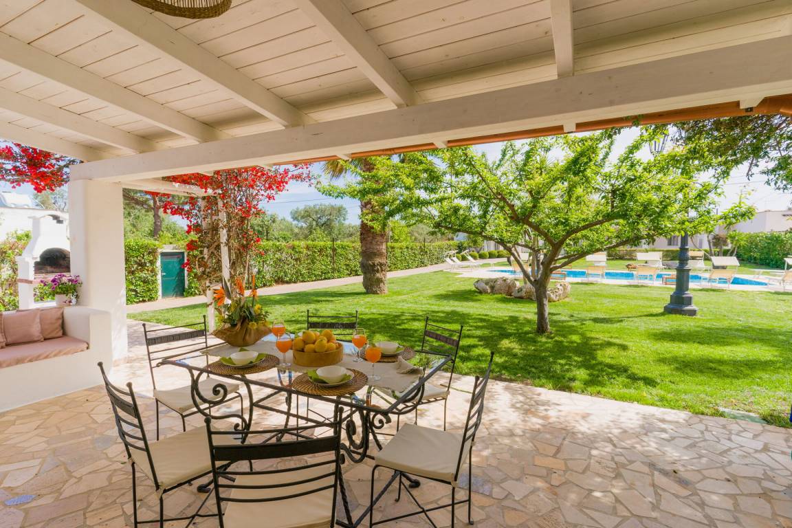 offener Raum: Esstisch, Sofa bed, WiFi Internet, Klimaanlage, TV, Kühlschrank, Herd, Tiefkühler, Spülmaschine, Bügeleisen, gut ausgestattete Küche, Mikrowelle, Ofen, Italienische Kaffeemaschine, Ausgang auf den Garten, Ausgang auf den Patio.
