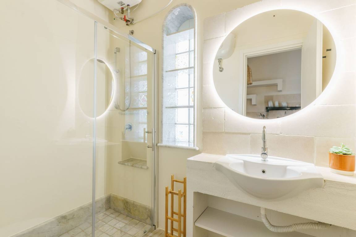 Apulia Shanti House (50 m²) ist eine zwei-Zimmer Wohneinheit, die auf eins Stockwerk gebaut ist, mit eins Badezimmer. Hier können bis zu fünf Leute unterkommen. Einige Zimmer sind für Ihren Komfort mit Klimaanlage ausgestattet (siehe bitte die Zimmer Einzelheiten hier unten).