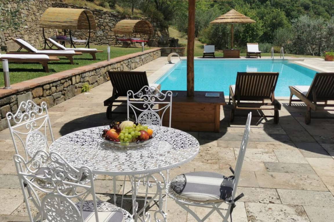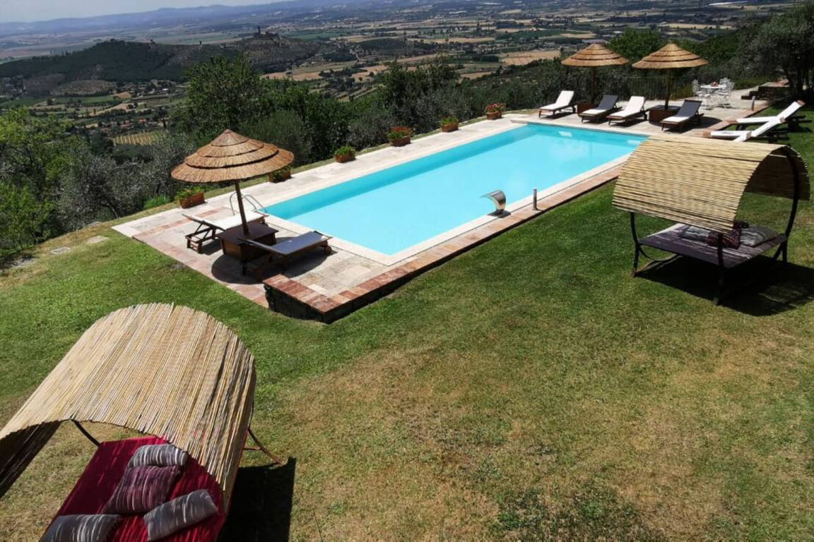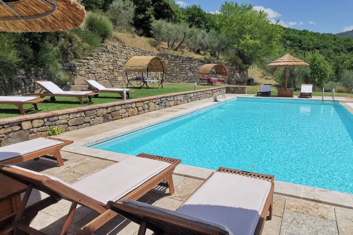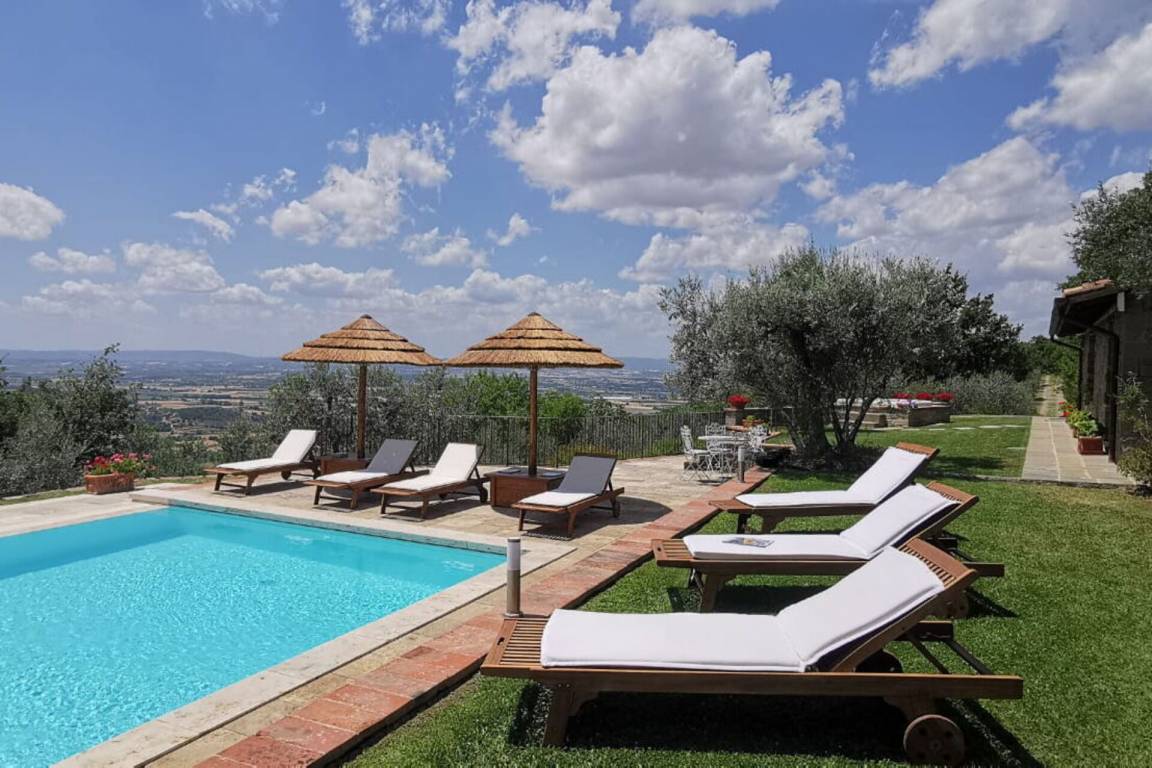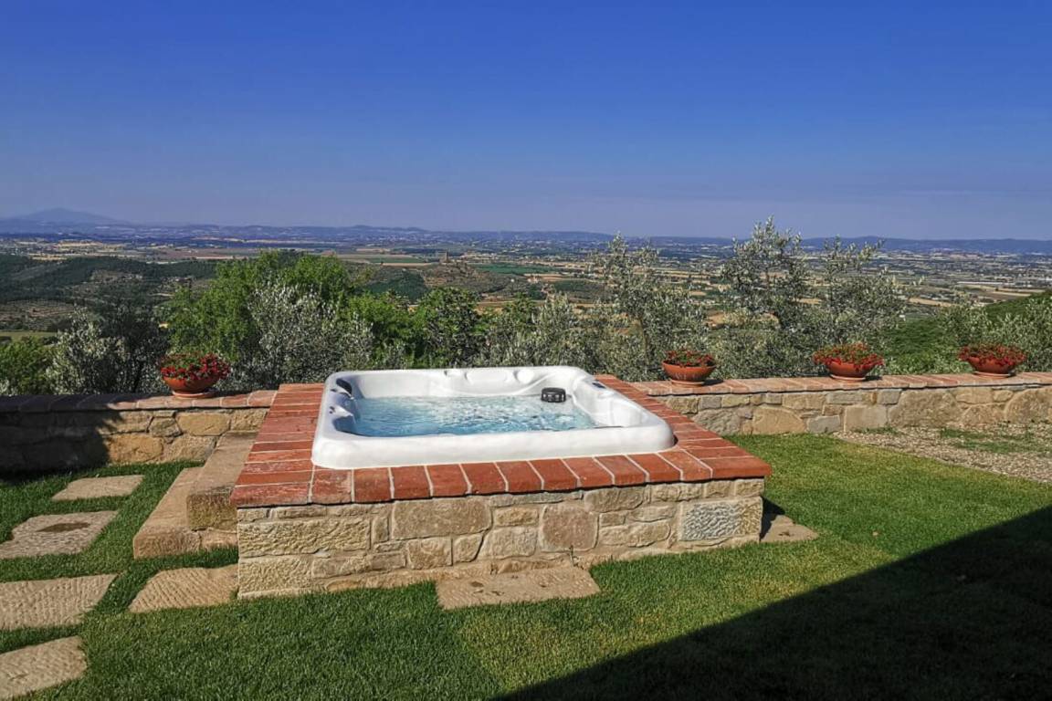 „The gorgeous villa nestled atop the hills of Castiglion Fiorentino was more spectacular than the pictures! The views were breath-taking, and the place was immaculate. To our delight, there were a few surprises at the villa - the pool had some lovely cabanas and new umbrellas installed, plus a hot jacuzzi which was lovely to enjoy in the evenings whilst taking in the view. We did not have a car, and transport did prove tricky, but our hosts were super helpful in collecting us from the local train station (however, I do recommend hiring a car). One evening, the matriarch and her friend cooked us a lovely local meal which included the most amazing Bistecca Fiorentina (the consistency was tender and soft, like butter), followed a spectacular Tiramisu - delightful! Definitely too much food, but we certainly did not mind. The complimentary vino della casa and house made olive oil were also a very lovely touch. Such a spectacular home, secluded and private location – even the separate staircases in the house offer some privacy from your guests (or kids…). We so enjoyed our time here and cannot wait to return to sunny, beautiful Tuscany.“