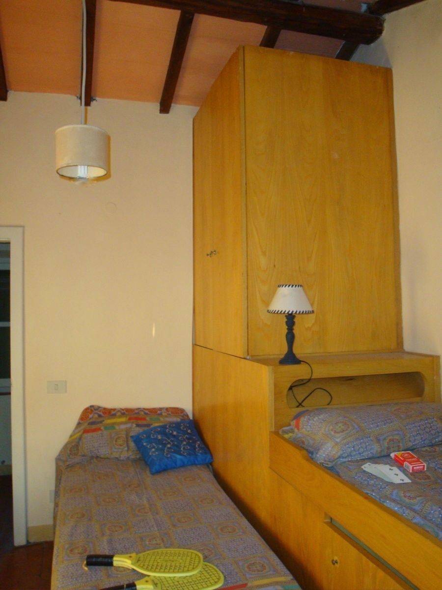 2.Stock: Grosse Doppelzimmer mit Ehebett und WC mit Waschbecken.