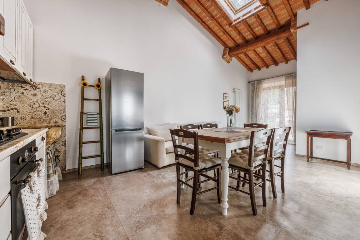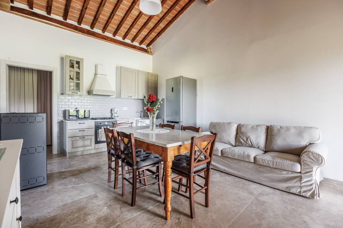 Wohnküche 1: gut ausgestattete Küche, Esstisch, Spülmaschine, Kühlschrank, Tiefkühler, Mikrowelle, Herd, Ofen, Italienische Kaffeemaschine, Waschmaschine, Sofa, WiFi Internet, Klimaanlage, Satelliten-TV, Ausgang auf den Garten.