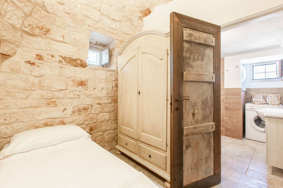 Wohnküche: Herd, Einzelbett, Doppel-Schlafsofa, WiFi Internet, Klimaanlage, Fliegengitter, TV, Ausgang auf den Garten.