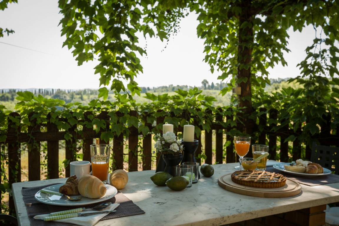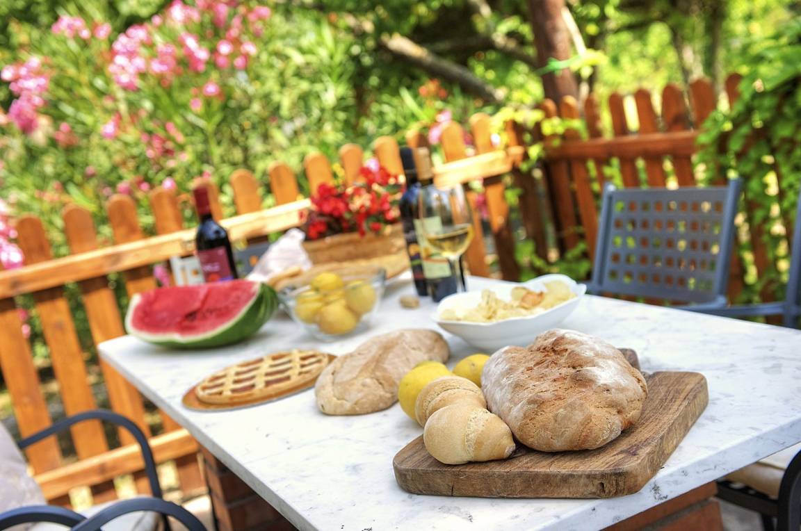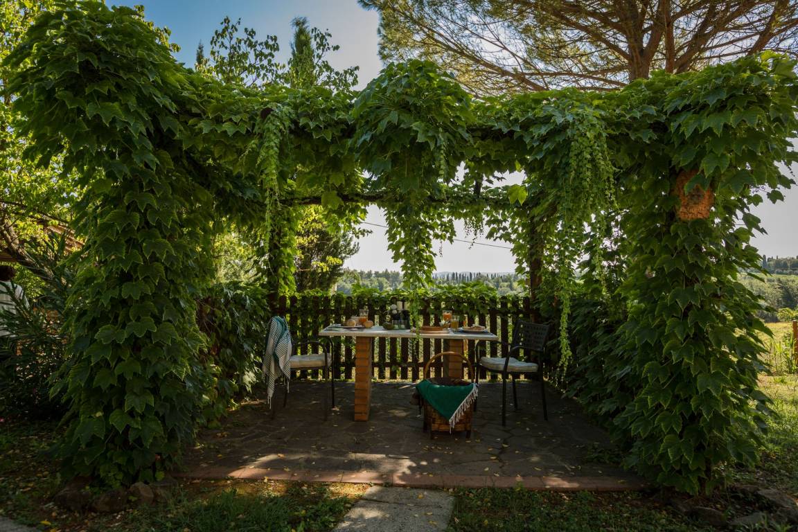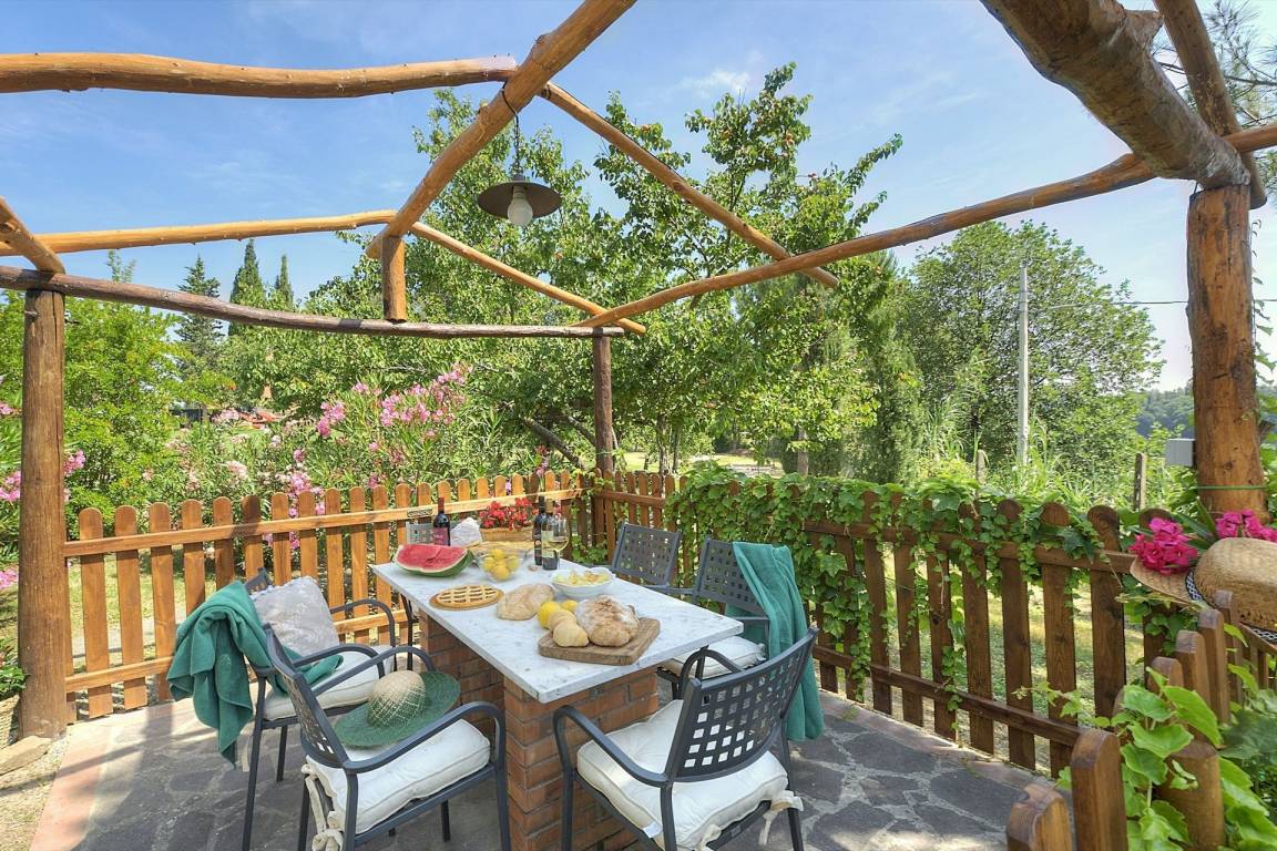 Private mit Stühlen und Tisch ausgerüstete Laube.