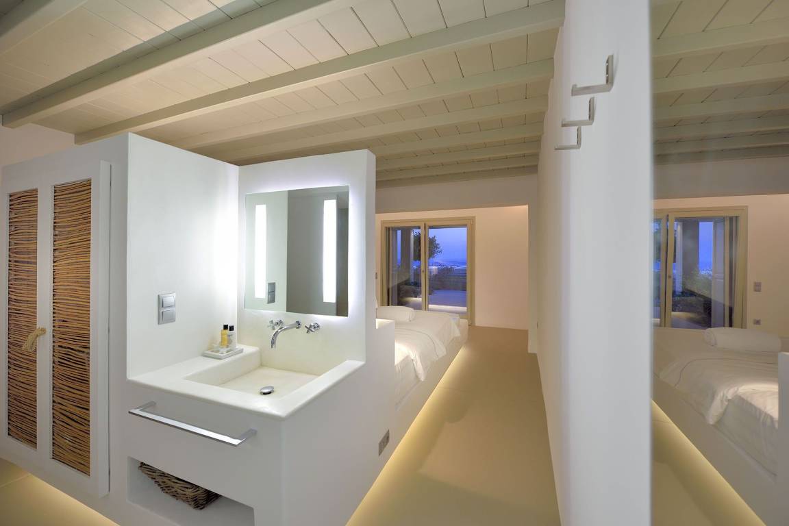 Die Villa Blue Moon bietet Platz für bis zu 6 Gäste und verfügt über 3 Schlafzimmer sowie 3 Bäder, verteilt auf mehrere Geschosse. Die Aufteilung trennt Wohn- und Schlafbereiche klar voneinander und gewährleistet Komfort und Privatsphäre für alle Gäste. Jedes Schlafzimmer ist mit sorgfältig ausgewählten Möbeln und ausreichend Stauraum ausgestattet. Die 3 Bäder sind mit modernen Armaturen und hochwertigen Oberflächen versehen. Die Wohnbereiche sind großzügig dimensioniert und öffnen sich natürlich zu den Außenbereichen hin.