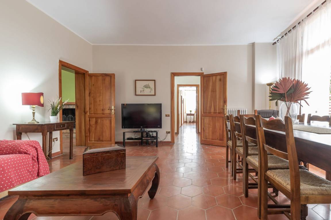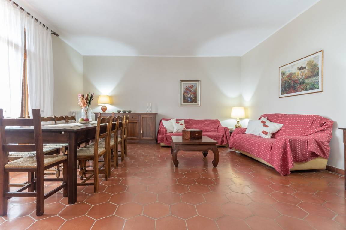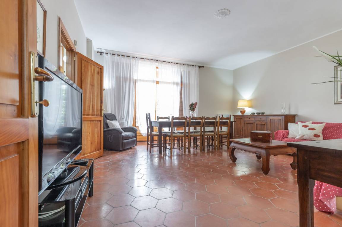 Wohnzimmer: Sofa, Sessel, Schreibtisch, Esstisch, Doppel-Schlafsofa, WiFi Internet, TV, Ausgang auf den Garten.