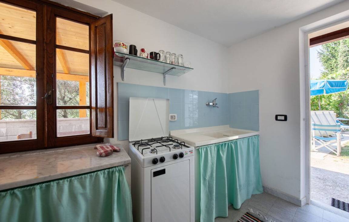 Wohnküche: gut ausgestattete Küche, Esstisch, Spülmaschine, Kühlschrank, Tiefkühler, Mikrowelle, Ofen, Italienische Kaffeemaschine, Waschmaschine, Sofa, WiFi Internet, TV, Ausgang auf den Garten.