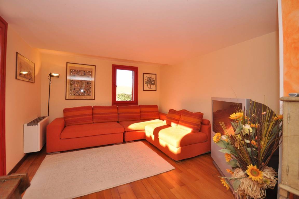 2 Stufen tiefer: Wohnzimmer (Satelliten TV) mit Zugang nach draußen.