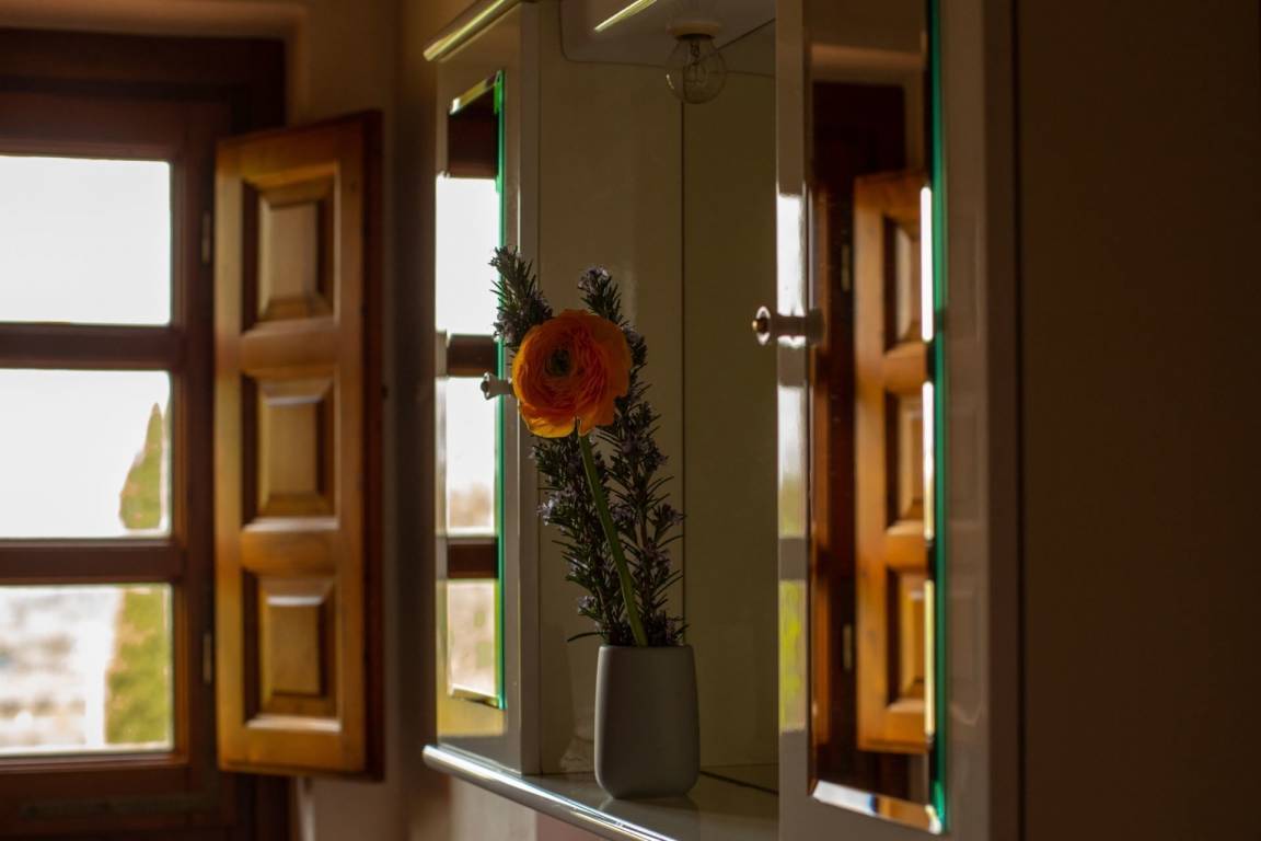 Erster Stock: Doppelzimmer mit kleiner Panoramaloggia, Doppelzimmer, Bad mit Dusche. Die 2 Schlafzimmer im ersten Stock sind mit Klimaanlagen ausgestattet.
