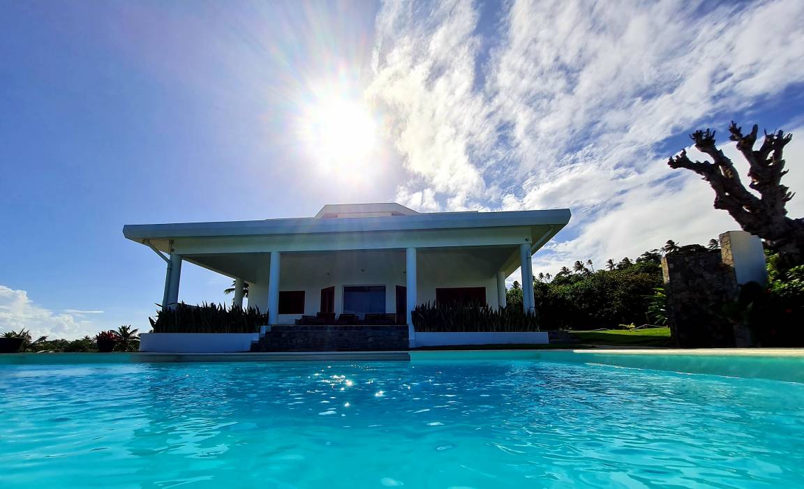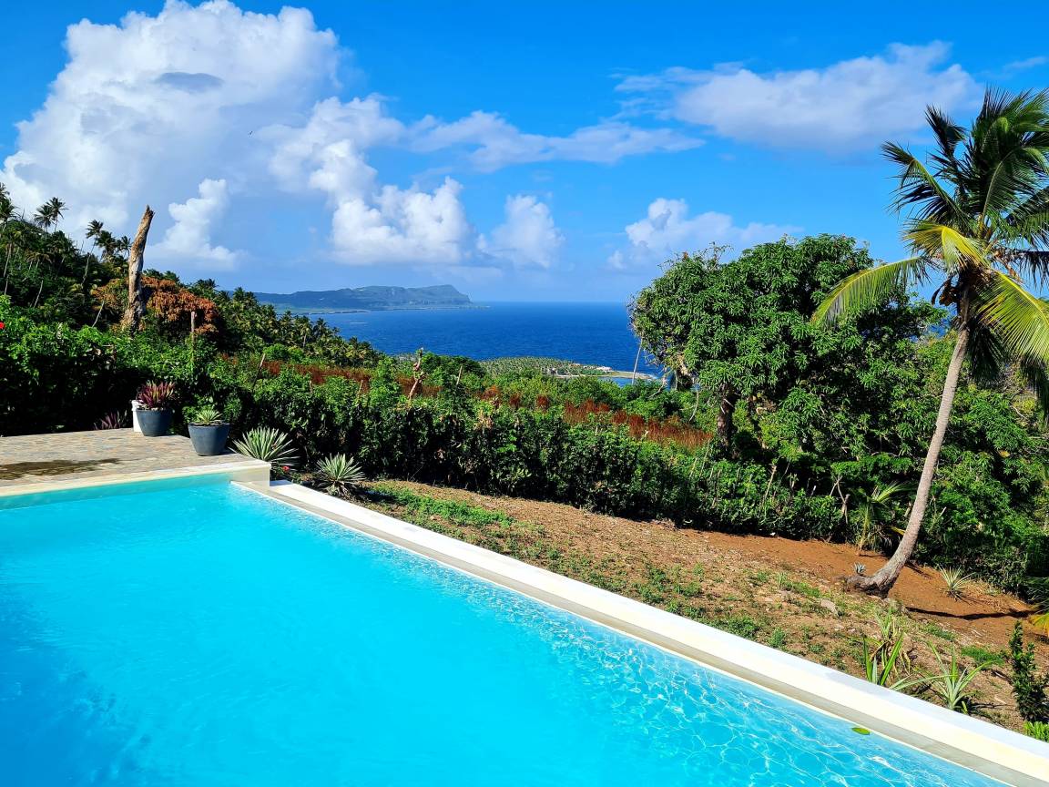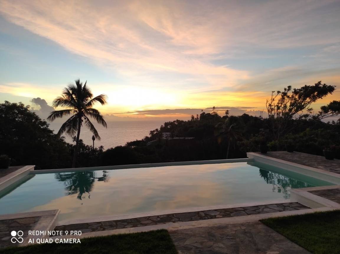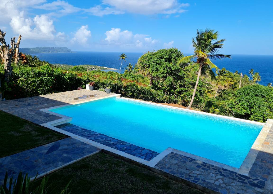 Die Ferienanlage liegt umgeben von Palmen auf einem Hügel mit einem malerischen Blick auf die Bucht von Samaná im landestypischen Ort Loma de la Piña.
