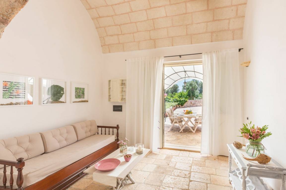 La Corte Della Masseria (90 m²) ist eine zwei-Zimmer Wohneinheit, die auf zwei Stockwerke gebaut ist, mit zwei Badezimmern. Hier können bis zu sechs Personen schlafen. Einige Zimmer sind für Ihren Komfort mit Klimaanlage ausgestattet (siehe bitte die Zimmer Einzelheiten hier unten).