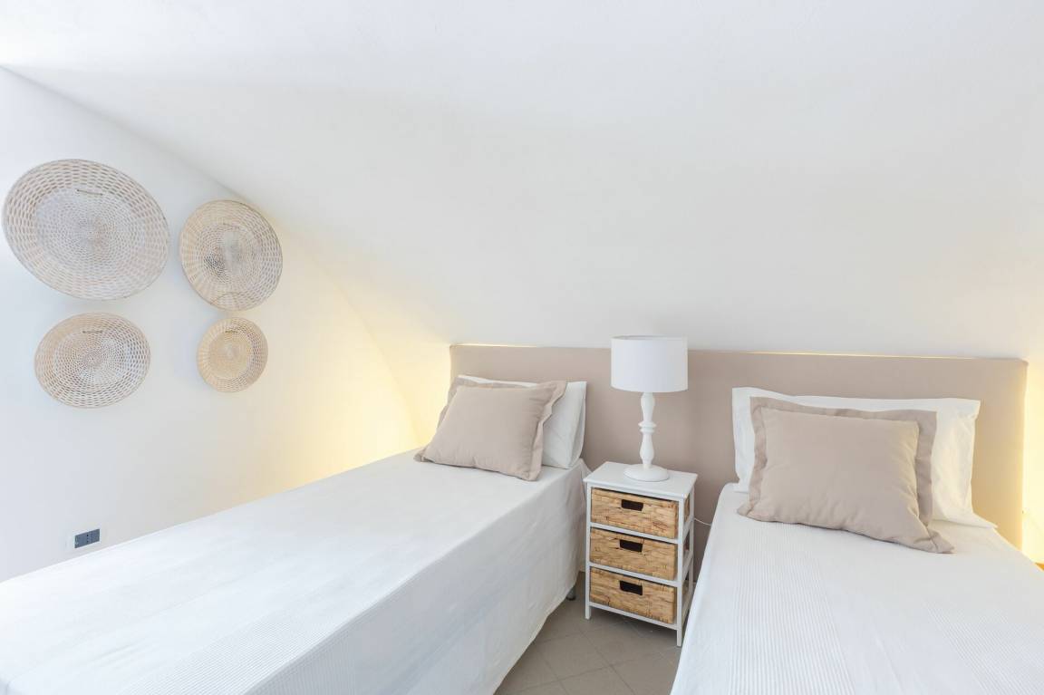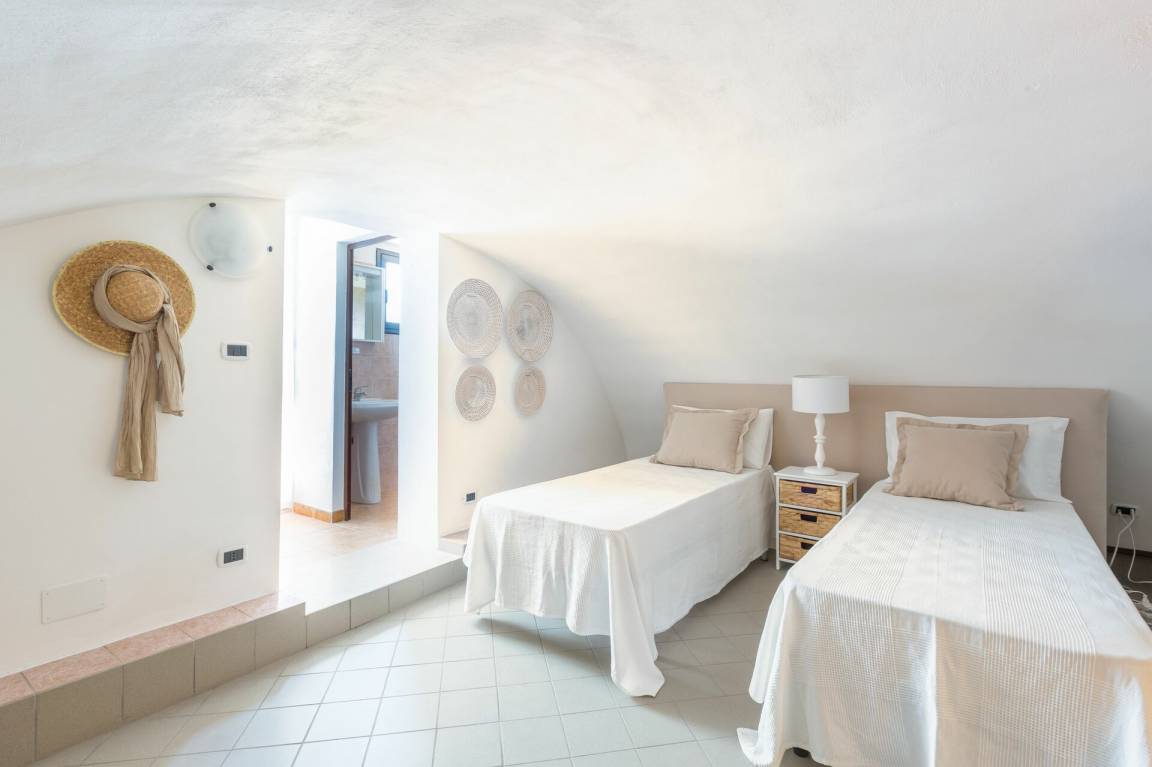 Schlafzimmer mit Bad: zwei Einzelbetten, WiFi Internet, Klimaanlage, Fliegengitter, Sessel, Waschbecken, WC, Bidet, Dusche, Fön, Ausgang auf den Balkon.
