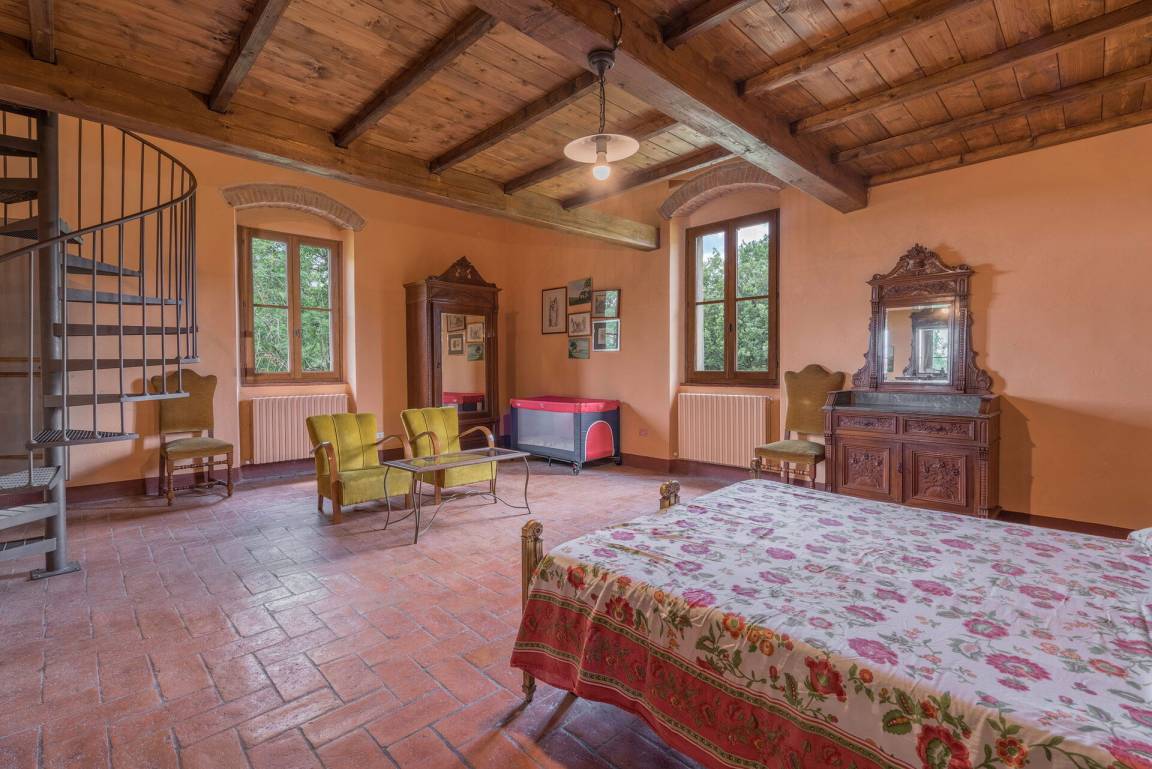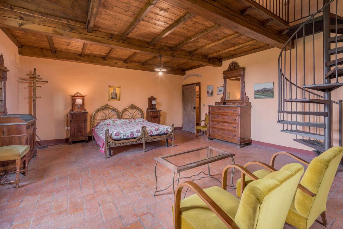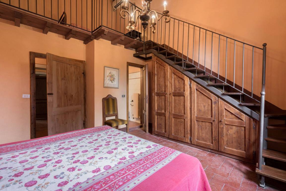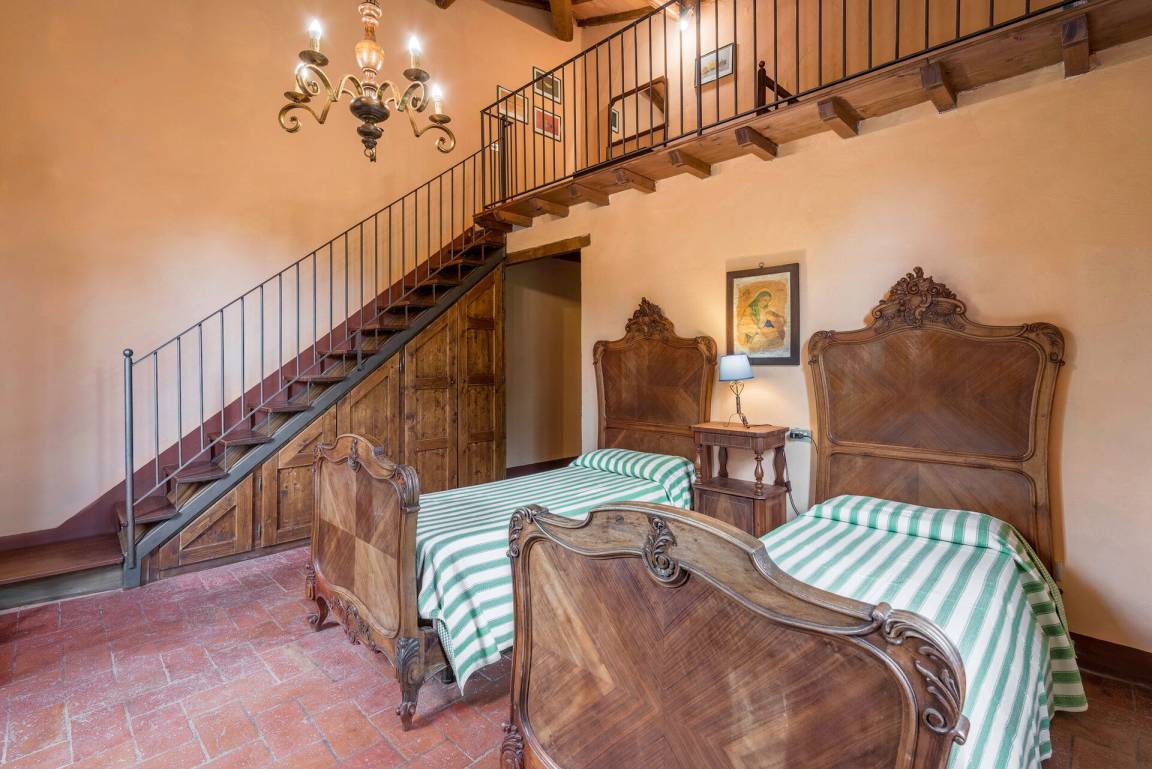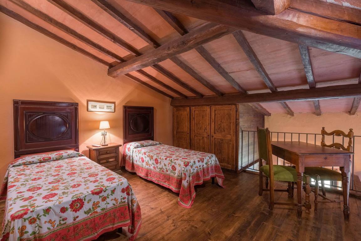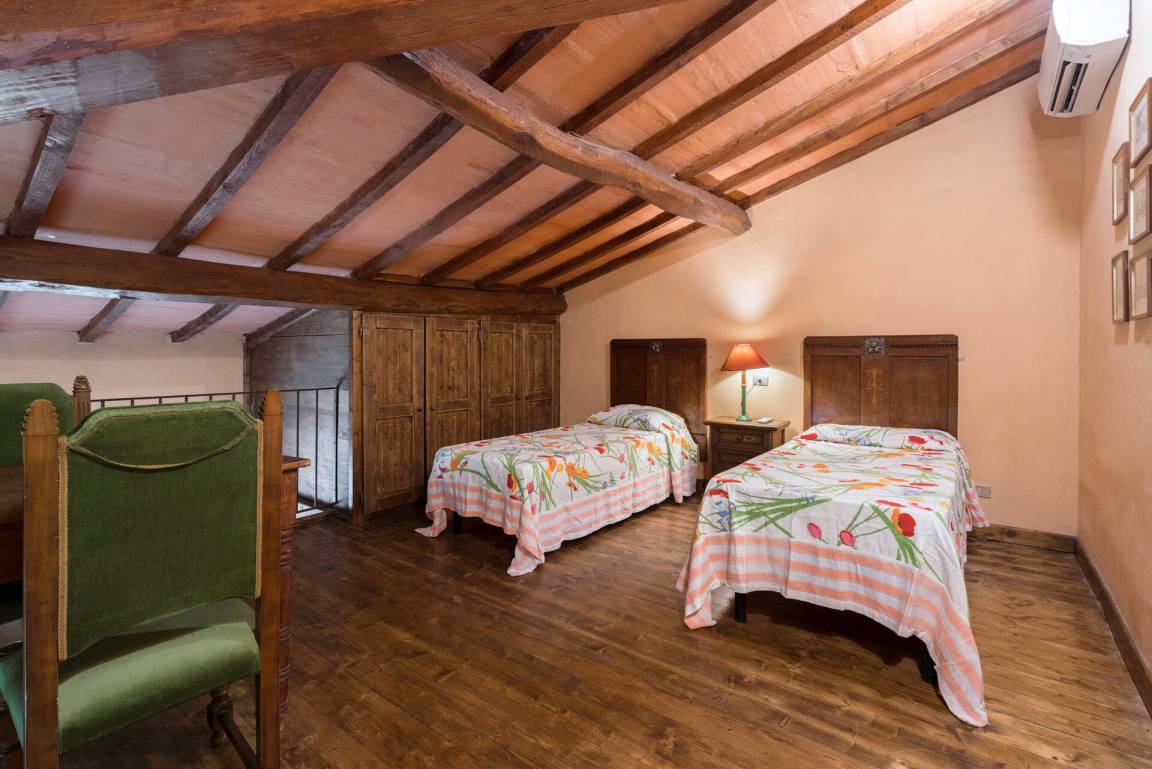 Schlafzimmer mit Bad 1: Doppelbett, zwei Einzelbetten, WiFi Internet, Klimaanlage, zwei Sessel, Kamin, Waschbecken, WC, Bidet, Dusche, Galerie.