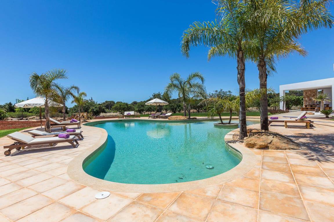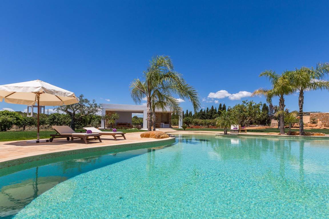 Die Villa verfügt über einen privaten Swimmingpool. Das Anwesen liegt in ländlicher Umgebung mit Ausblick auf die Landschaft.