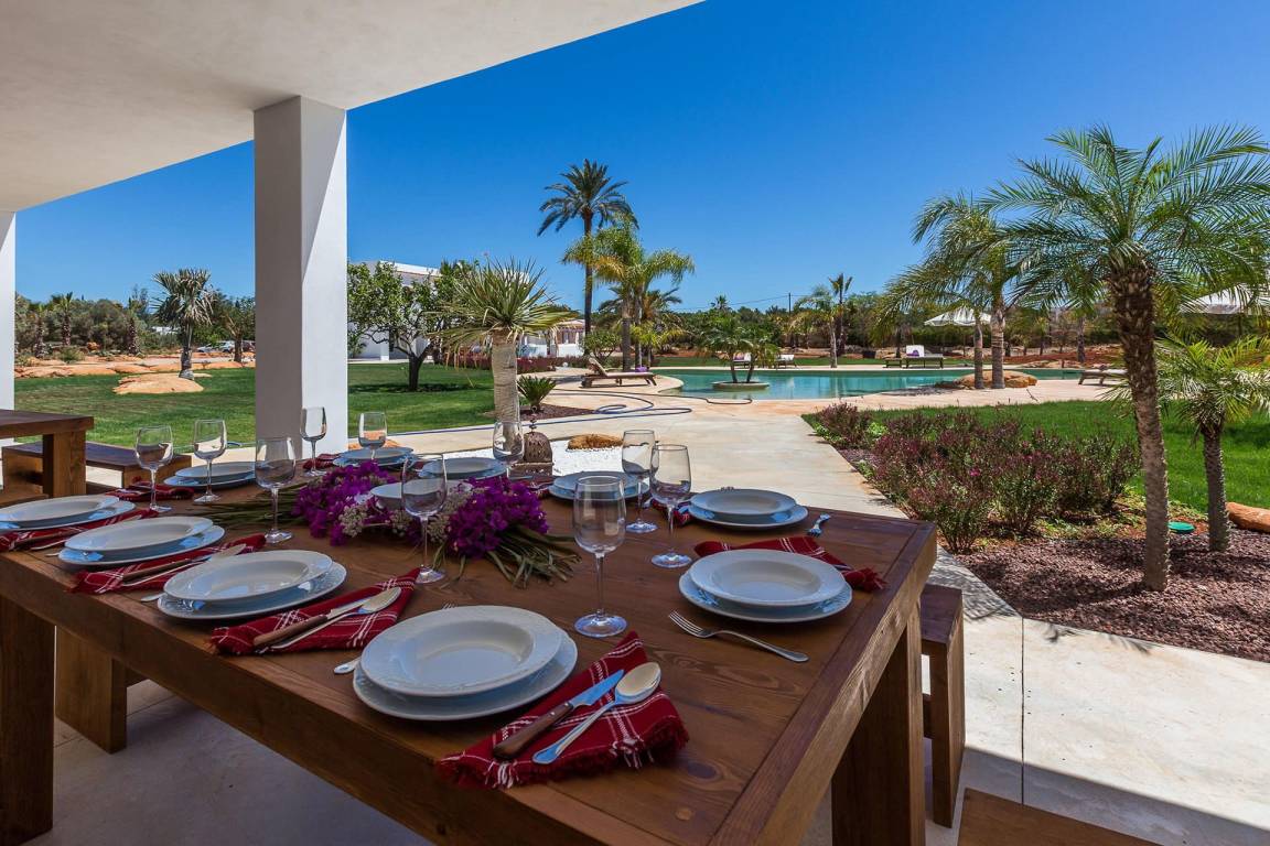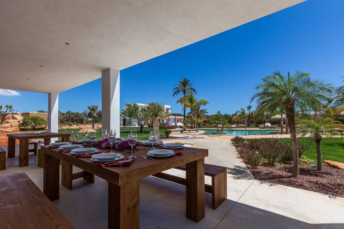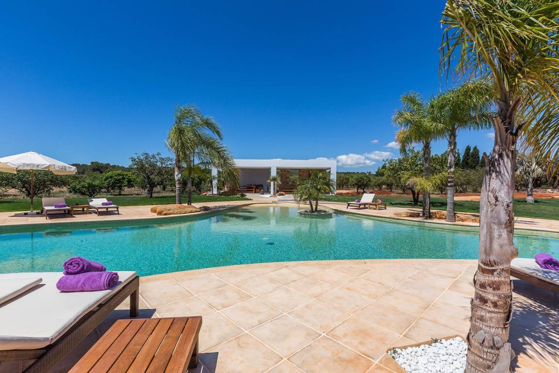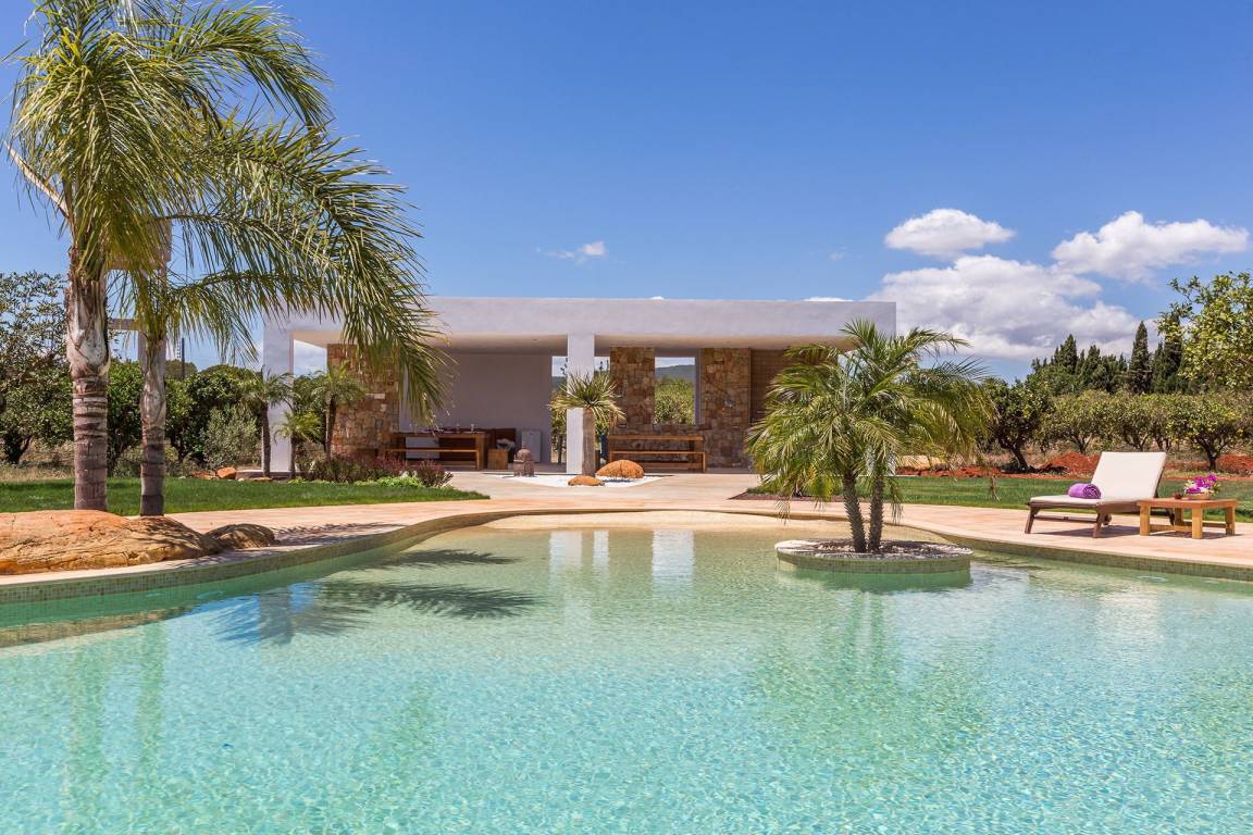 Die Villa verfügt über eine Gesamtfläche von nicht näher spezifizierten Quadratmetern, verteilt auf mehrere Ebenen, und bietet Platz für bis zu 10 Gäste in 5 Schlafzimmern und 5 Bädern. Die Innenräume sind offen gestaltet, wobei Wohn- und Essbereiche fließend ineinander übergehen. Jedes Schlafzimmer ist großzügig geschnitten und dient als Rückzugsort für die Gäste.