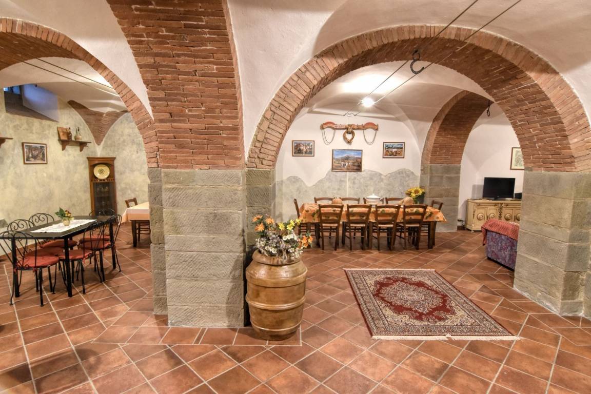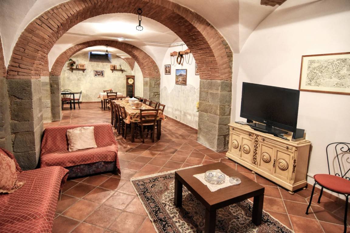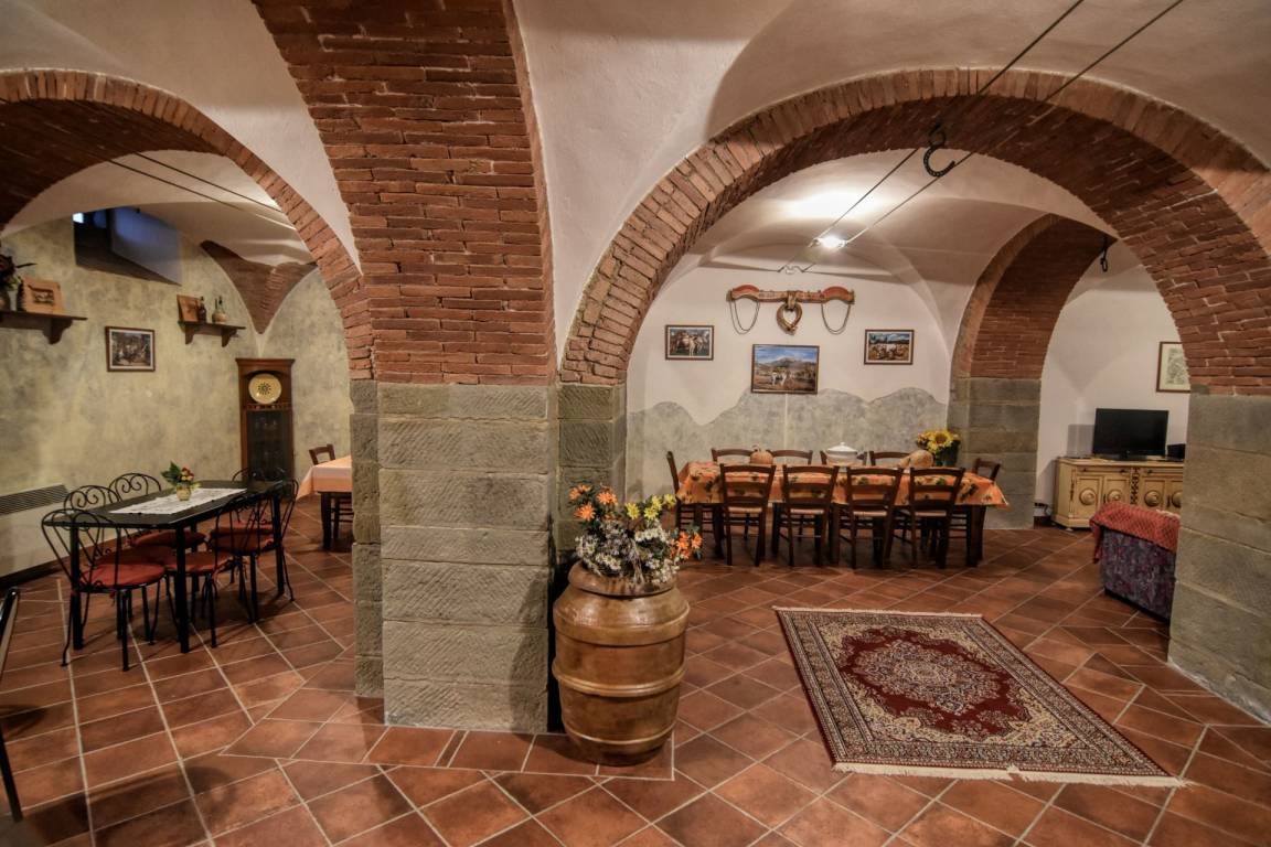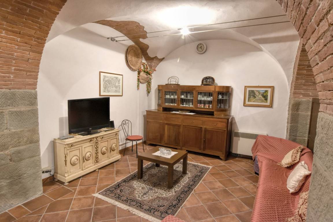 KELLER STOCK: mit Zugang über interne Treppe vom Erdgeschoss, großen Wohn-Esszimmer mit Küche und Sitzecke mit Sofas und Sat - TV, WC und kleiner Wäscherei.