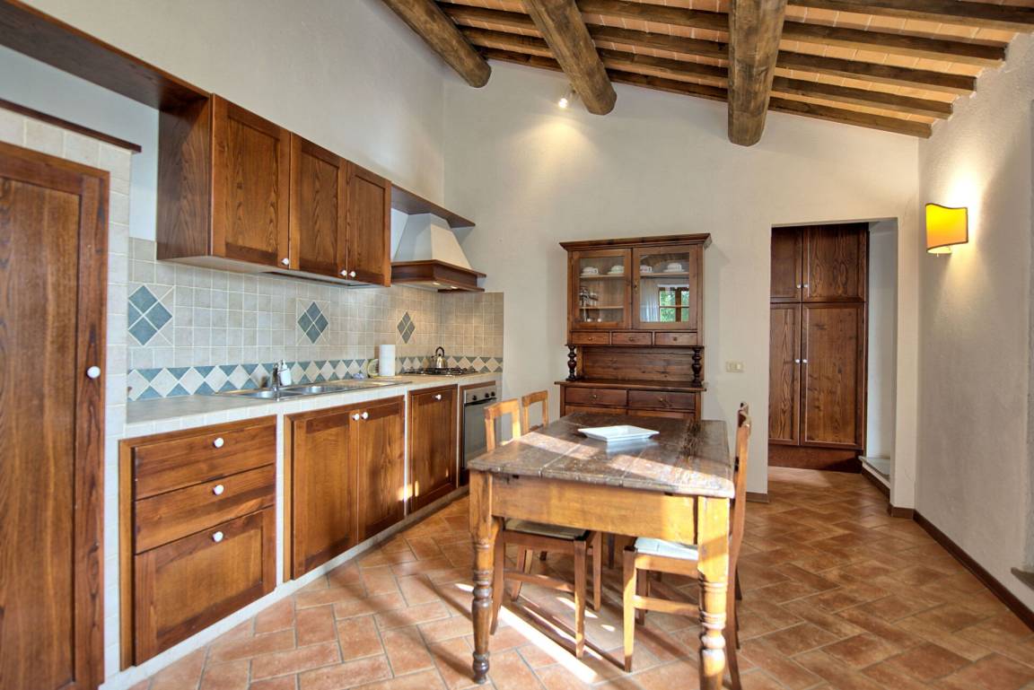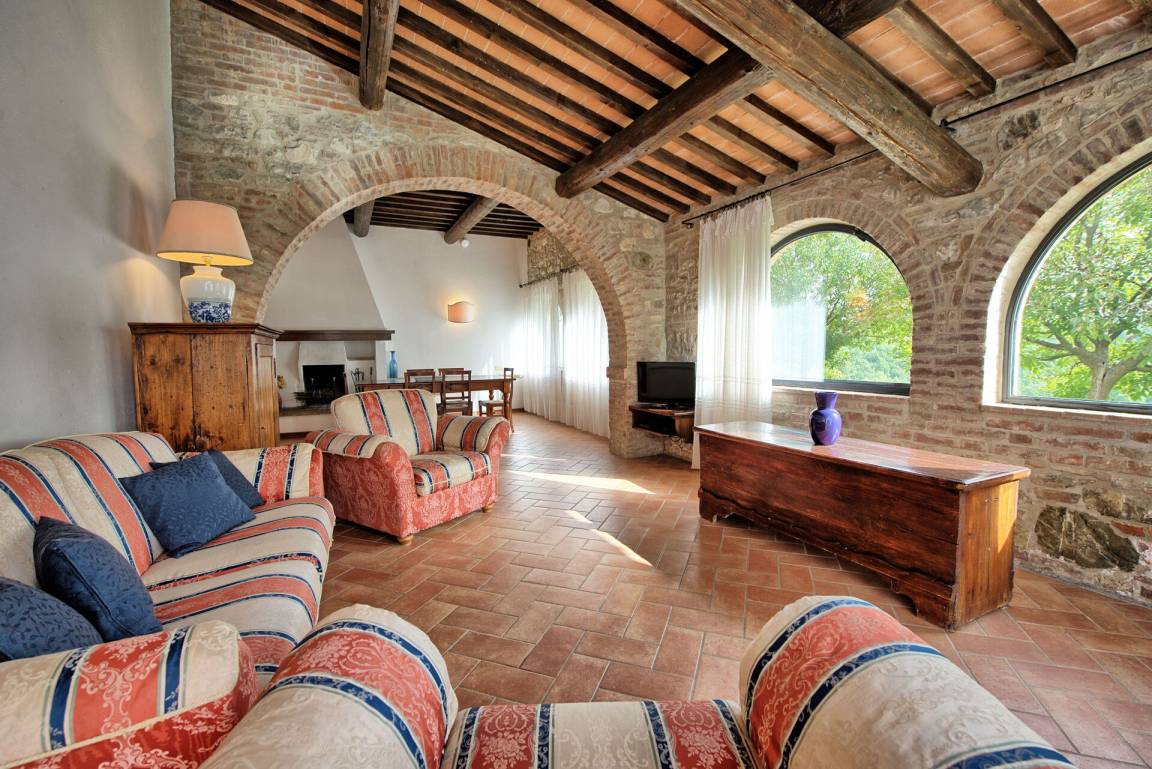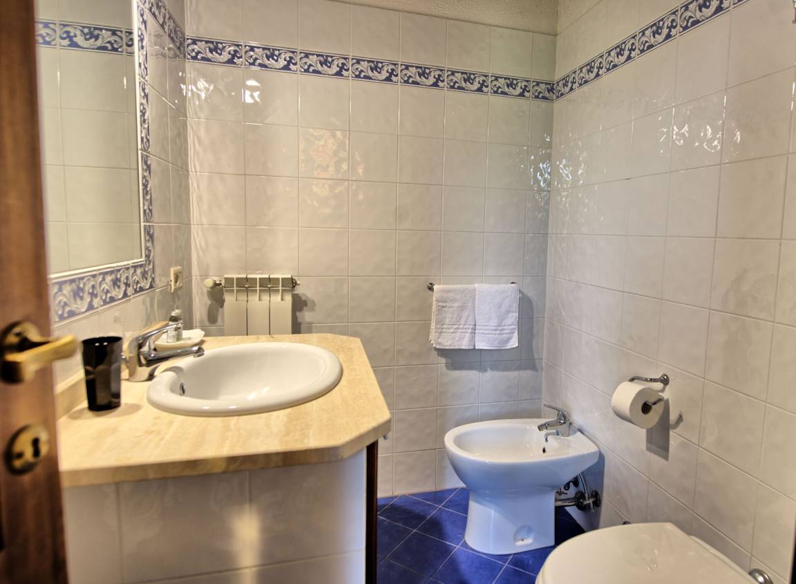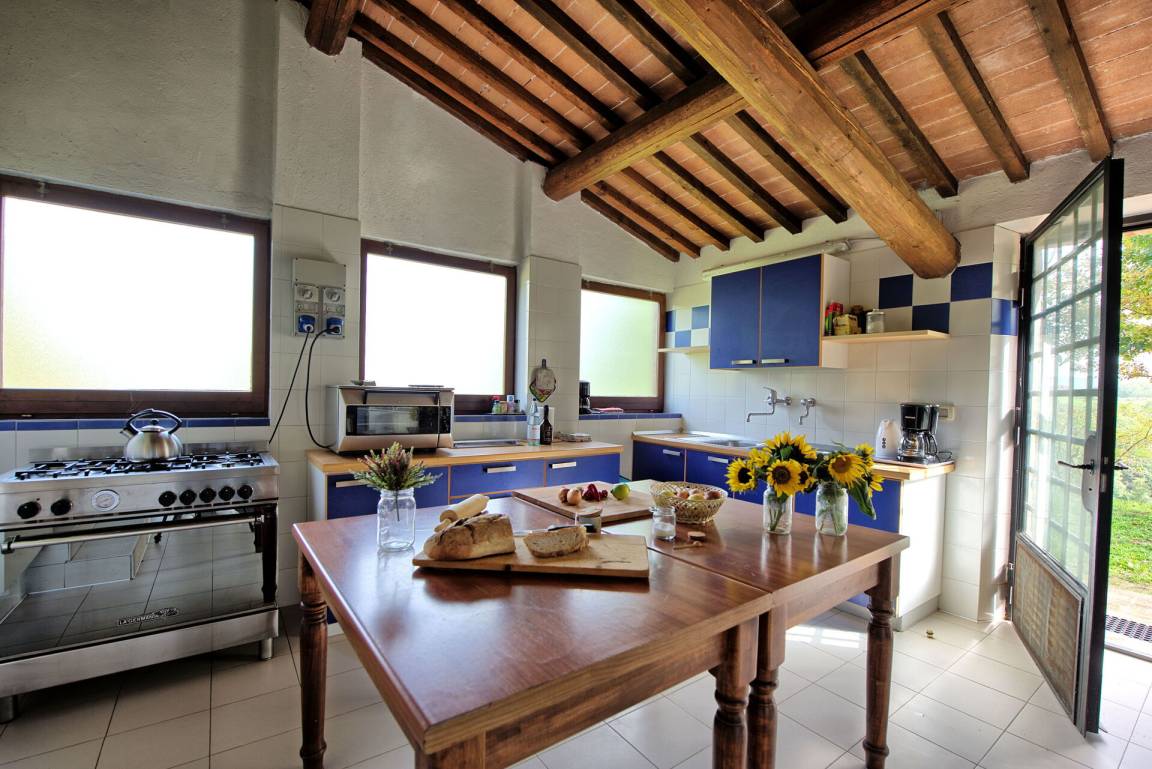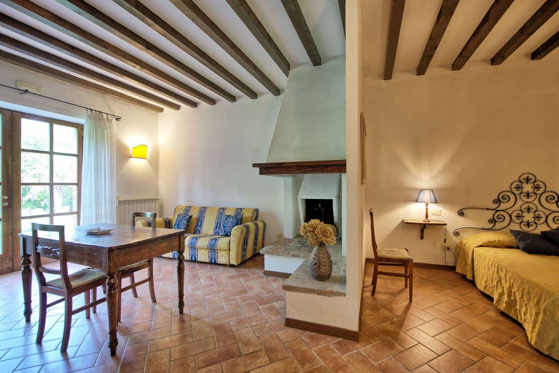 Erdgeschoss (mit separatem Eingang von außen): großer Saal (mit Kamin) von über 80 Quadratmetern, der für Abendessen, Mittagessen und Frühstück genutzt werden kann; vom selben Raum hat man Zugang zu einer halb professionell ausgestatteten Küche; 2 Gäste - WC.