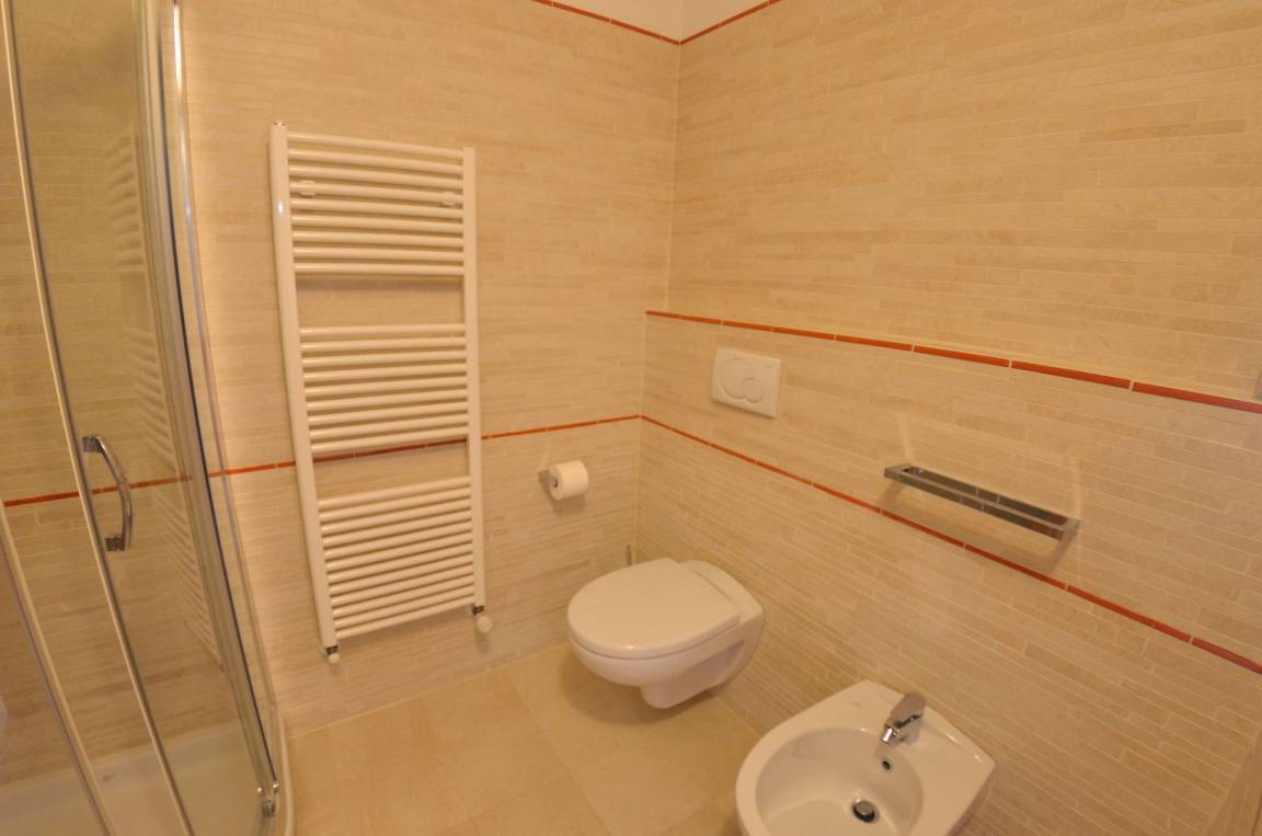 Schlafzimmer mit Bad 2: Doppelbett, Waschbecken, WC, Dusche.