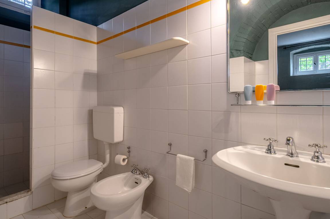 Schlafzimmer mit Bad: Doppelbett, WiFi Internet, TV, Waschbecken, WC, Bidet, Dusche, Fön.