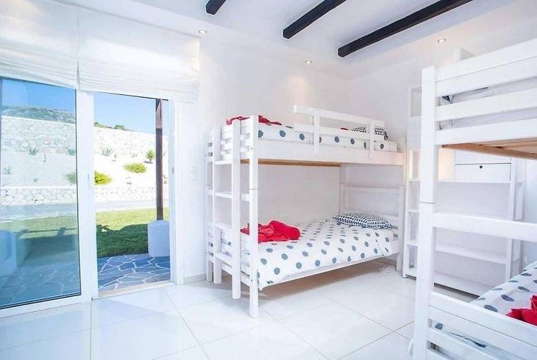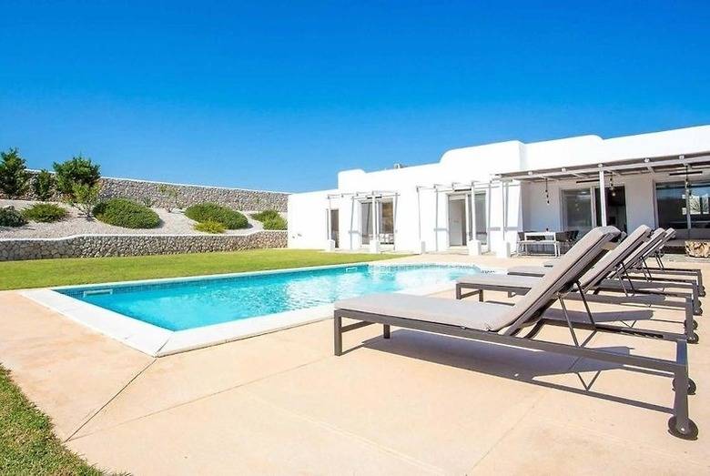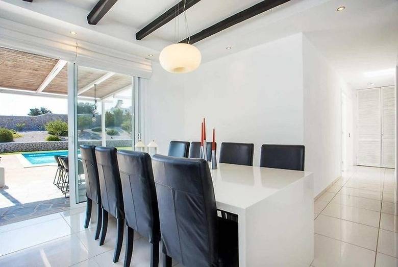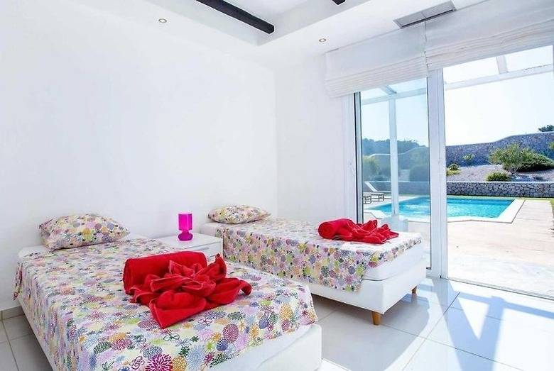 Die Villa ist ebenerdig und Treppenstufen gibt es nur im Pool. Sehr geräumig und modern eingerichtet. Im dritten Schlafzimmer mit 2 Etagenbetten, können sowohl bis zu 4 Kinder, als auch 4 Erwachsene schlafen. Bei Bedarf stellen wir auch ein Babyreisebett inkl. Bettwäsche zur Verfügung. Das Hauptschlafzimmer verfügt neben einem begehbaren Kleiderschrank, auch über ein Badezimmer en Suit. Der große Pool hat eine Tiefe von 1,00m bis 1,50mund kann beheizt werden. Preis für Poolheizung pro Tag 30,- €. Im BBQ-Bereich steht Ihnen auch eine Bar und ein Brotholzofen zur Verfügung.