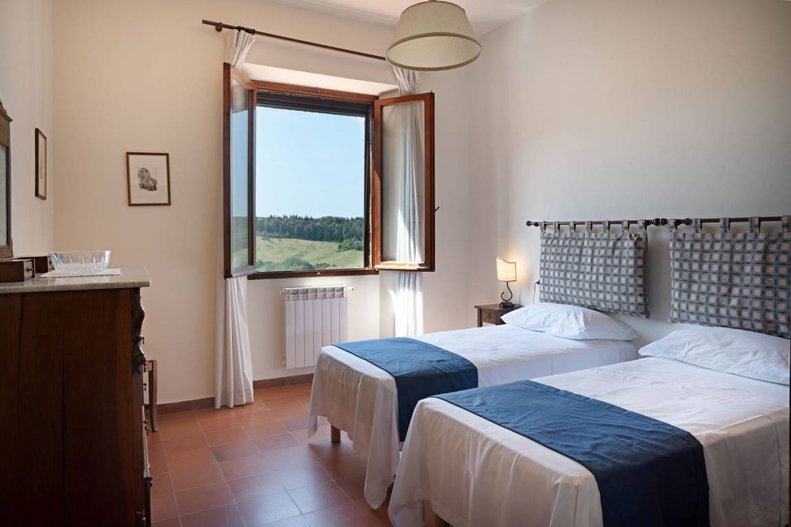 Erster Stock: Doppelzimmer mit Ehebett und privatem Bad mit Dusche, Zweibettzimmer