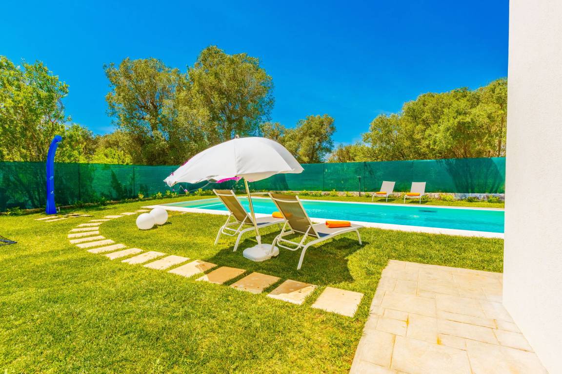 Garten: Schwimmbad, Dusche, WiFi Internet, Grill, Außenbereich für das Essen im Freien, Esstisch, Gartenmöbel, Sonnenliege, umzäuntes Grundstück.