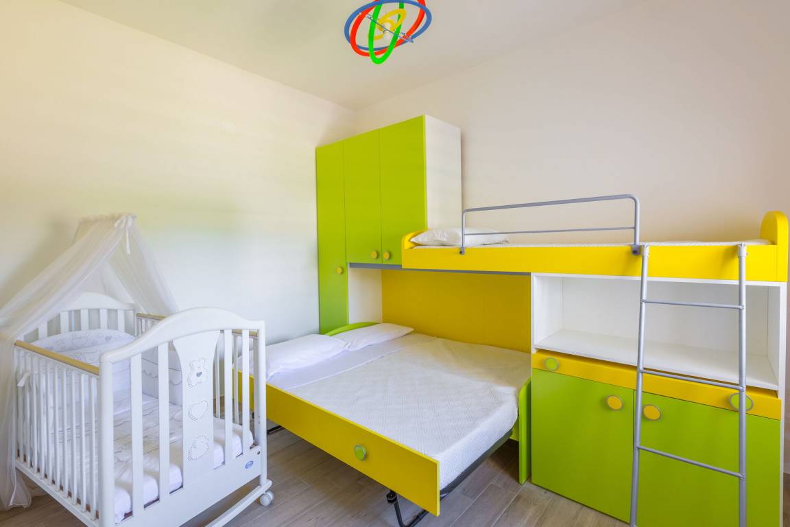 Schlafzimmer 3: zwei Einzelbetten, Krippe.