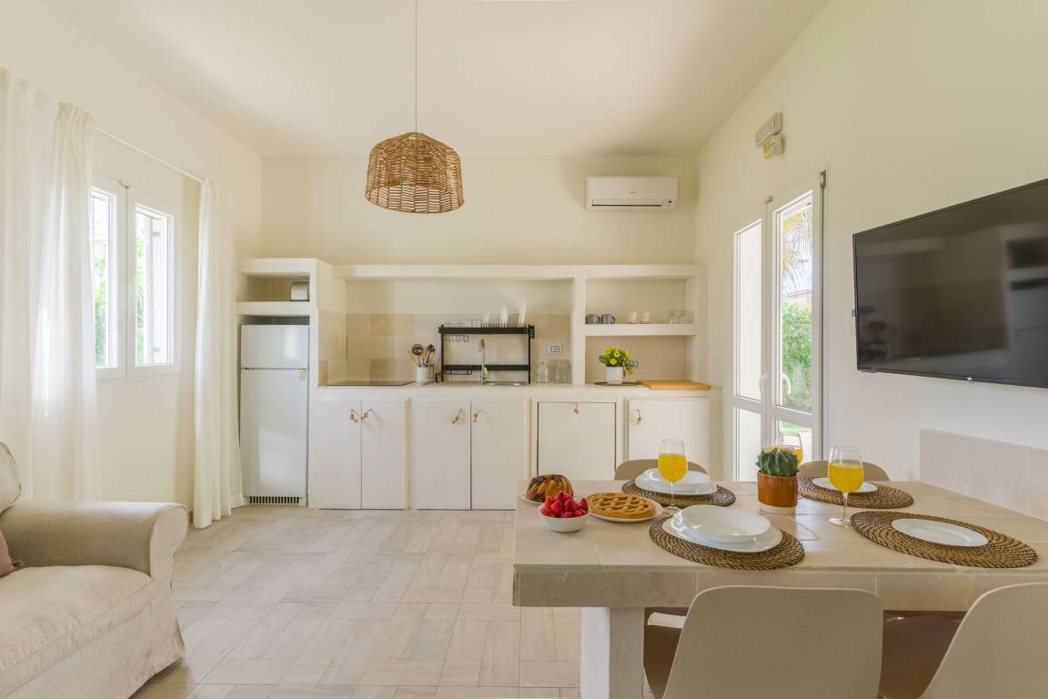 Wohnküche: gut ausgestattete Küche, Esstisch, Spülmaschine, Kühlschrank, Tiefkühler, Mikrowelle, Herd, Toaster, Italienische Kaffeemaschine, Sofa, WiFi Internet, Klimaanlage, TV, Ausgang auf den Garten, Ausgang auf den Patio.