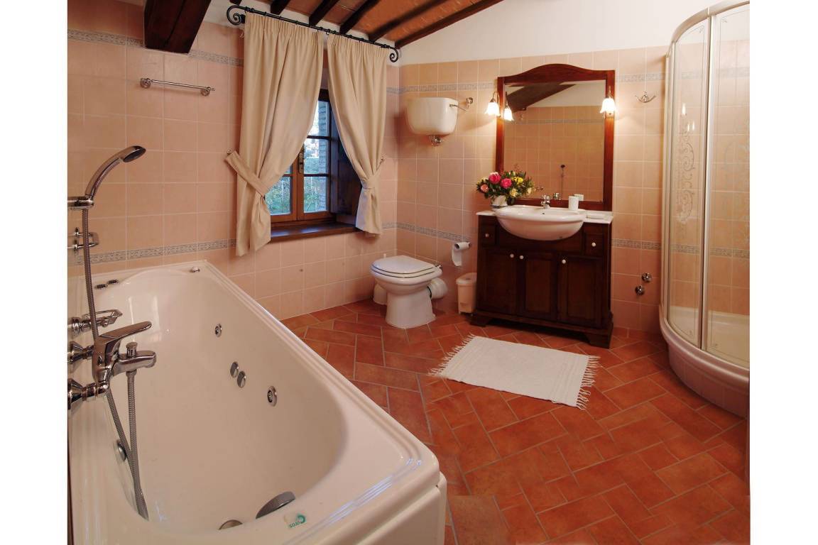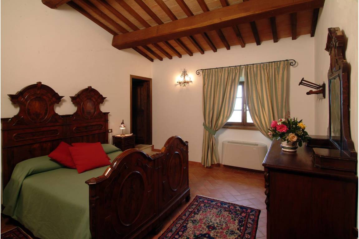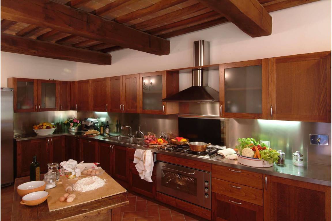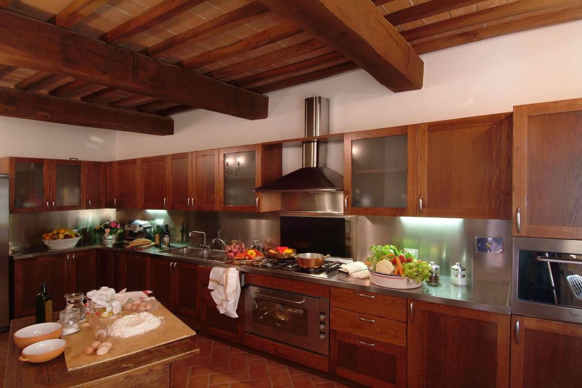 Die Küche im Erdgeschoss verfügt über einen elektrischen Ofen, eine Mikrowelle, eine Geschirrspülmaschine, eine amerikanische und italienische Kaffeemaschine sowie einen Toaster; eine zweite vollständig ausgestattete Küche steht im ersten Obergeschoss zur Verfügung. Eine Waschmaschine befindet sich im Waschraum des Erdgeschosses. Die Heizung wird durch eine GPL-Zentralheizung bereitgestellt; Klimaanlage ist in allen Räumen vorhanden. Die Unterhaltung wird durch einen Satelliten-Flachbildfernseher und einen DVD-Player im Wohnzimmer sowie ein Stereo-Hi-Fi-System gewährleistet. Wi-Fi-Verbindung, ein Tischtennistisch und Fliegengitter an allen Fenstern sind vorhanden. Der private Garten und die private Terrasse eignen sich zum Entspannen in der toskanischen Landschaft; ein Grill steht für Mahlzeiten im Freien zur Verfügung. Der Pool ist vom 9. Mai bis 3. Oktober geöffnet. Ein Whirlpool-Bad befindet sich in einem der Bäder im ersten Obergeschoss.