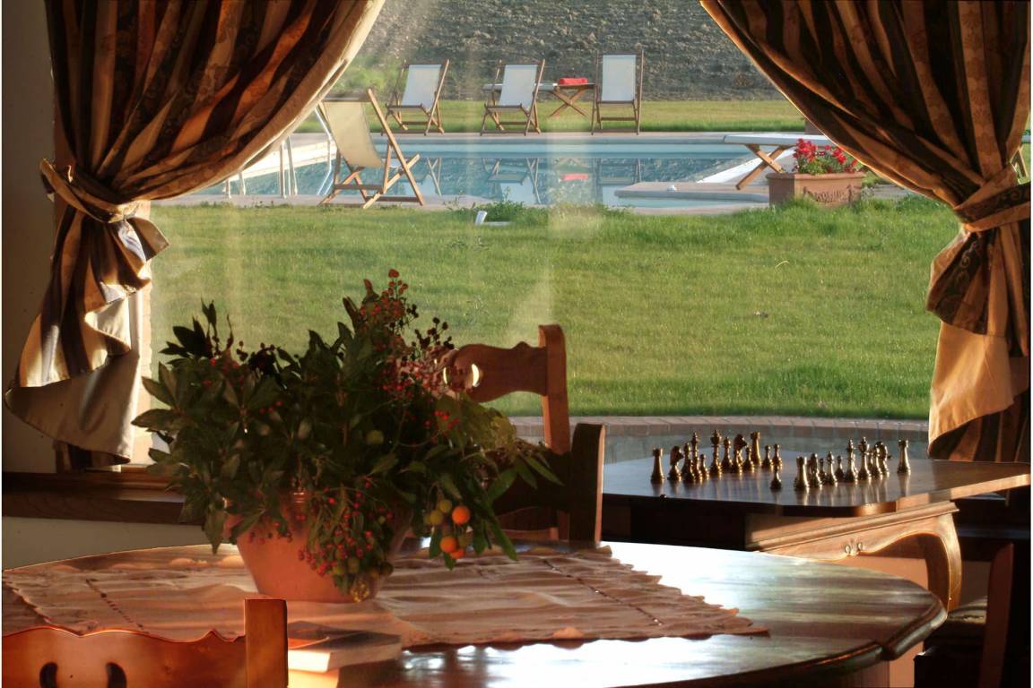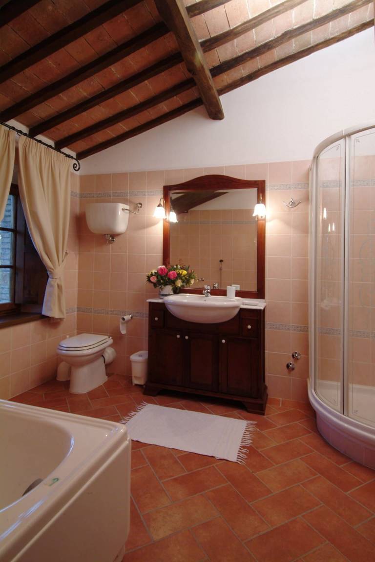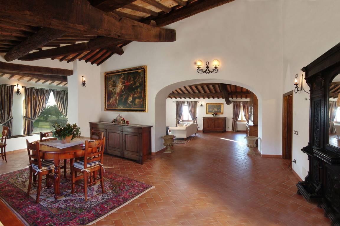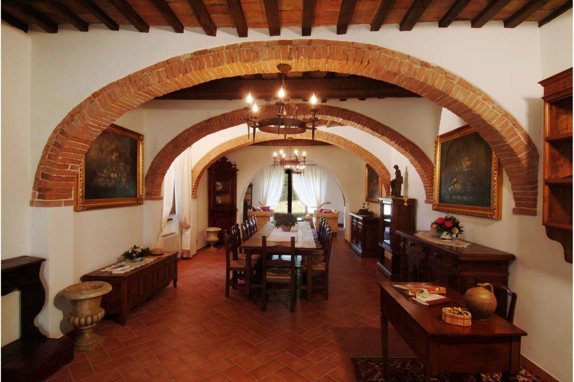 Die Küche im Erdgeschoss verfügt über einen elektrischen Ofen, eine Mikrowelle, eine Geschirrspülmaschine, eine amerikanische und italienische Kaffeemaschine sowie einen Toaster; eine zweite vollständig ausgestattete Küche steht im ersten Obergeschoss zur Verfügung. Eine Waschmaschine befindet sich im Waschraum des Erdgeschosses. Die Heizung wird durch eine GPL-Zentralheizung bereitgestellt; Klimaanlage ist in allen Räumen vorhanden. Die Unterhaltung wird durch einen Satelliten-Flachbildfernseher und einen DVD-Player im Wohnzimmer sowie ein Stereo-Hi-Fi-System gewährleistet. Wi-Fi-Verbindung, ein Tischtennistisch und Fliegengitter an allen Fenstern sind vorhanden. Der private Garten und die private Terrasse eignen sich zum Entspannen in der toskanischen Landschaft; ein Grill steht für Mahlzeiten im Freien zur Verfügung. Der Pool ist vom 9. Mai bis 3. Oktober geöffnet. Ein Whirlpool-Bad befindet sich in einem der Bäder im ersten Obergeschoss.