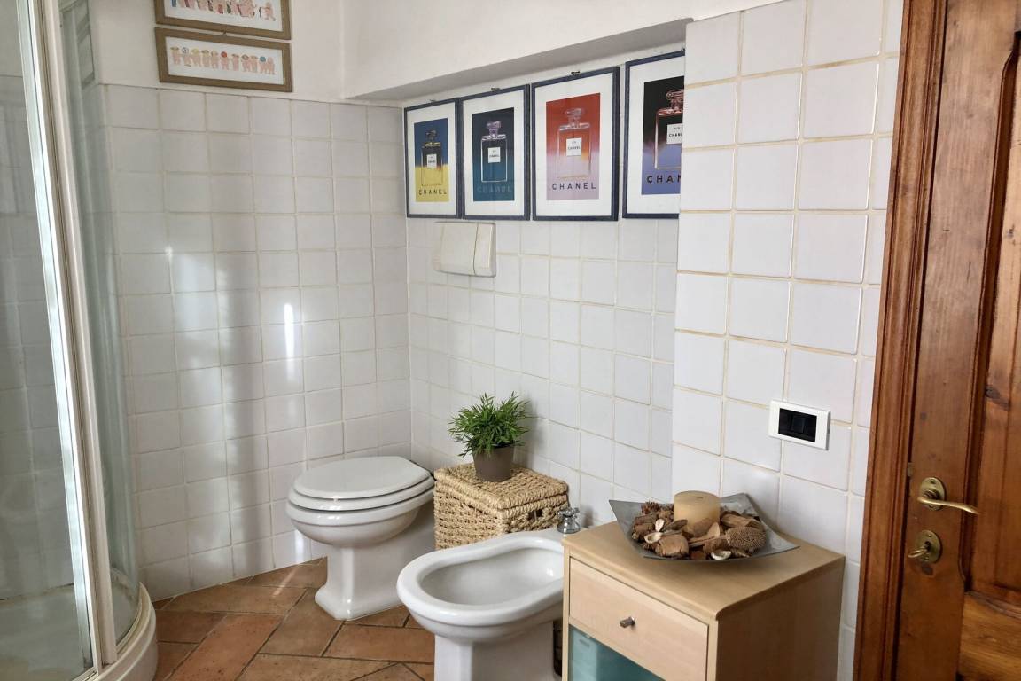 Badezimmer 1: Waschbecken, WC, Bidet, Dusche.