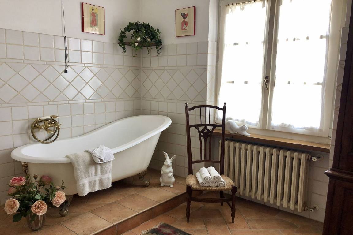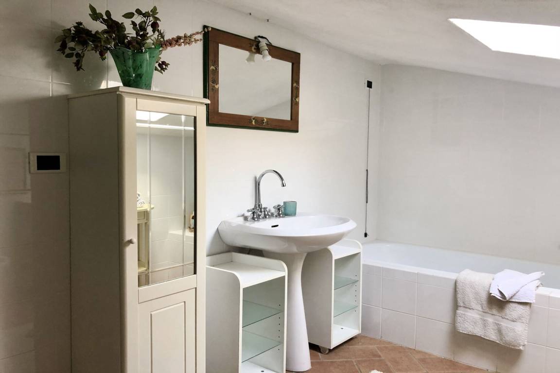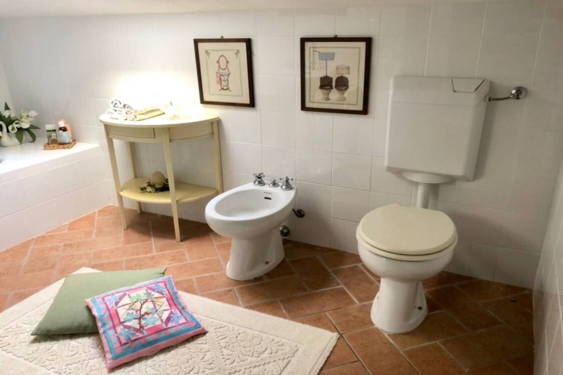 Badezimmer 2: Waschbecken, WC, Bidet, Badewanne.