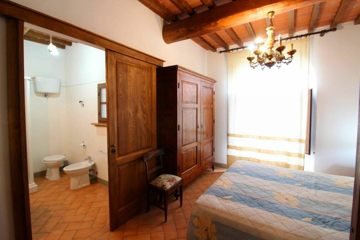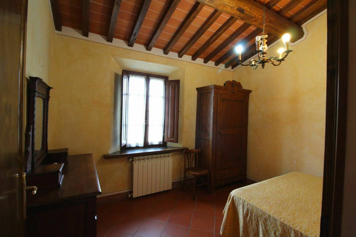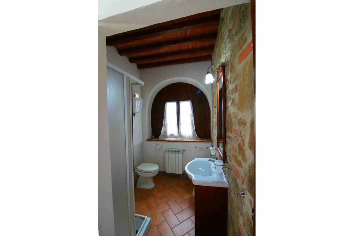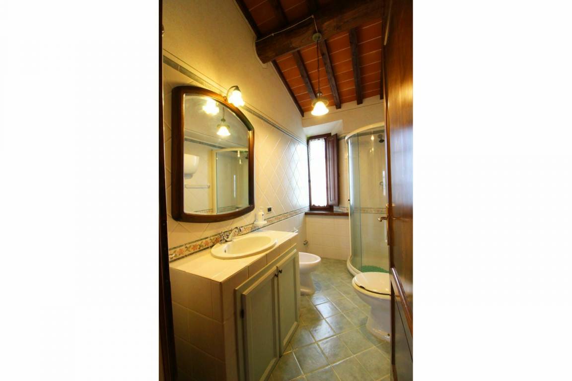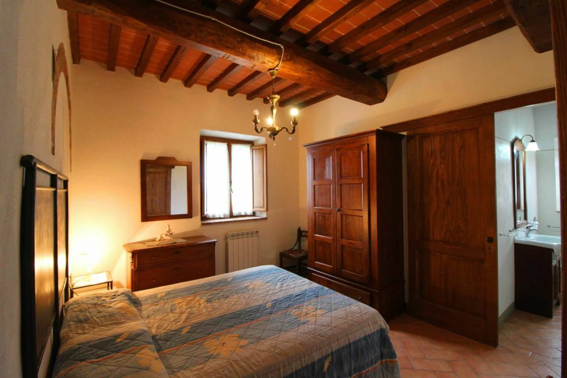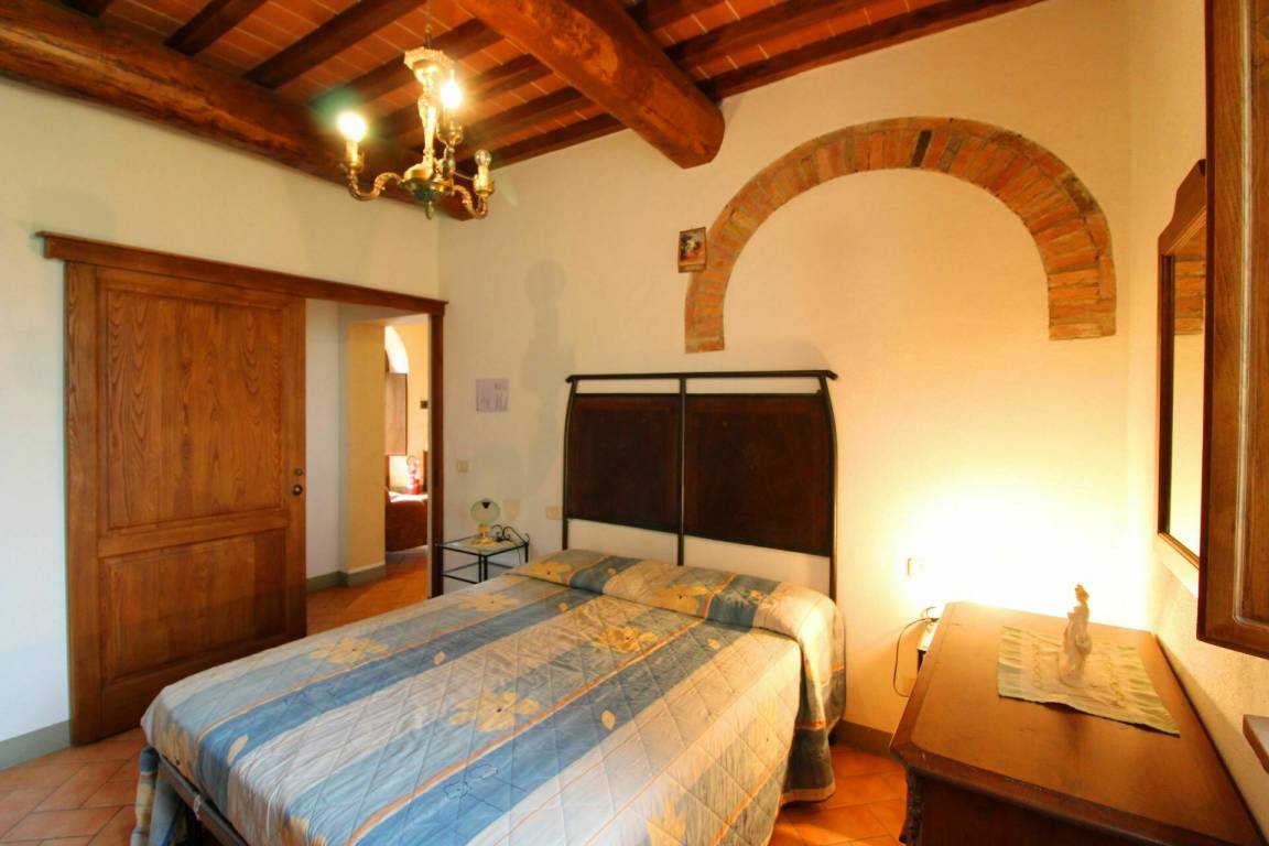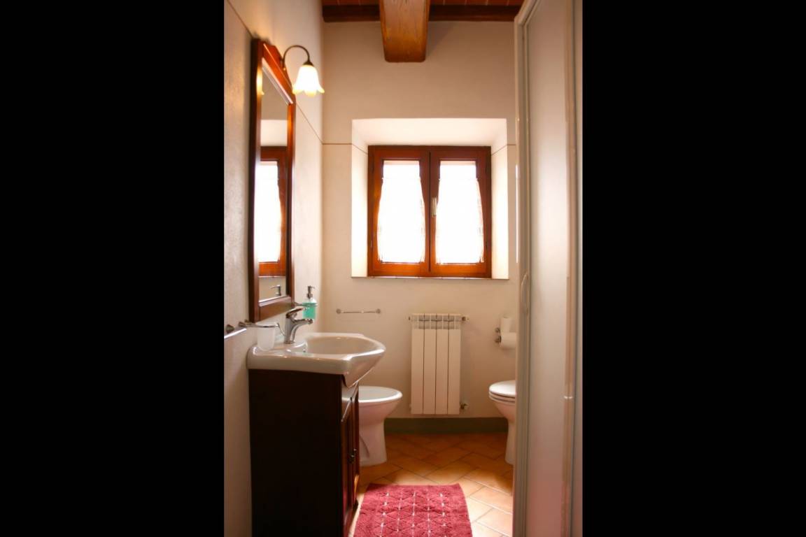 ERSTER STOCK: Eingang über eine Naturstein Außentreppe mit kleiner Panoramaloggia. Geräumige Wohnzimmer, großem Kamin und Sofa, 4 Doppelzimmer, Schlafzimmer mit französischem Bett (m. 1,40), zwei Badezimmer mit Dusche.