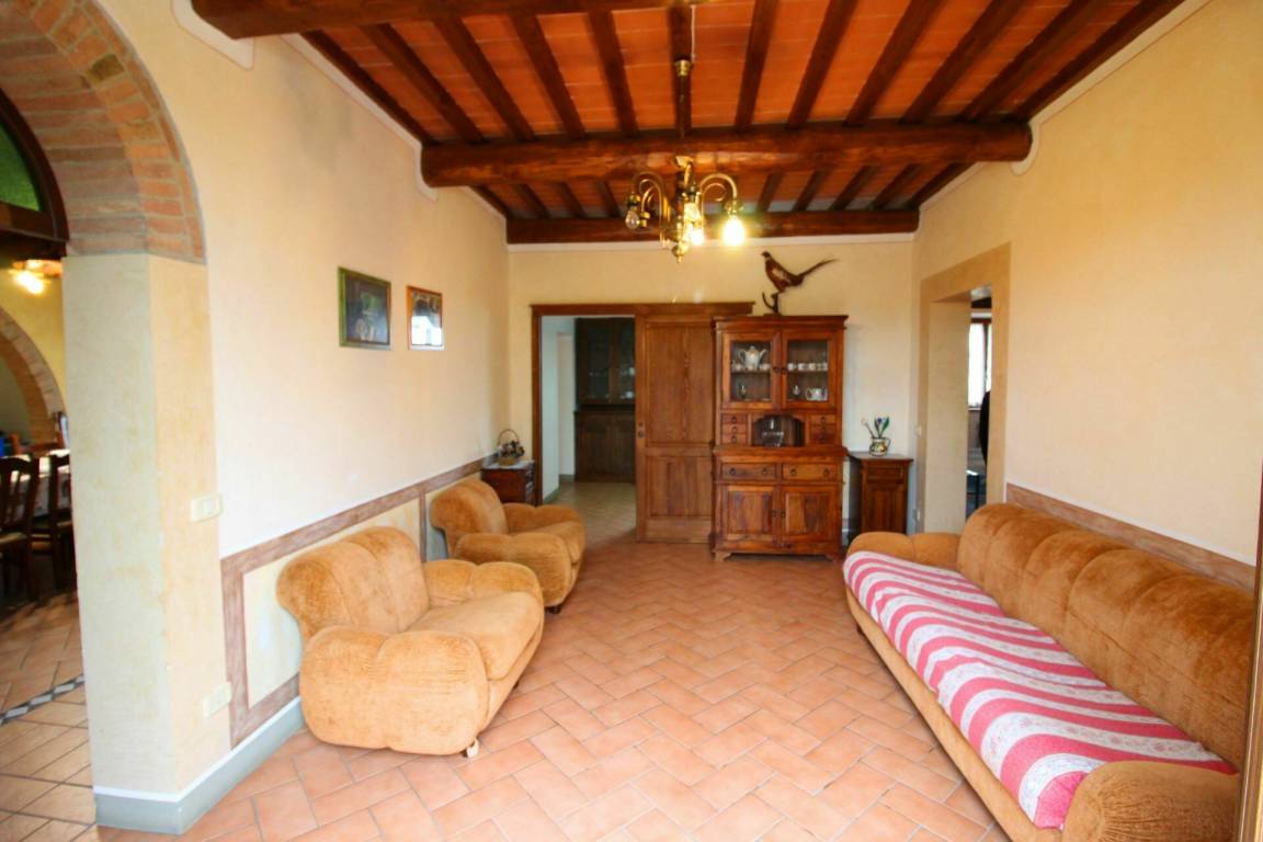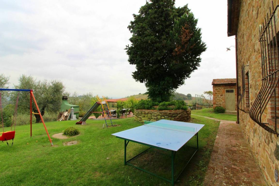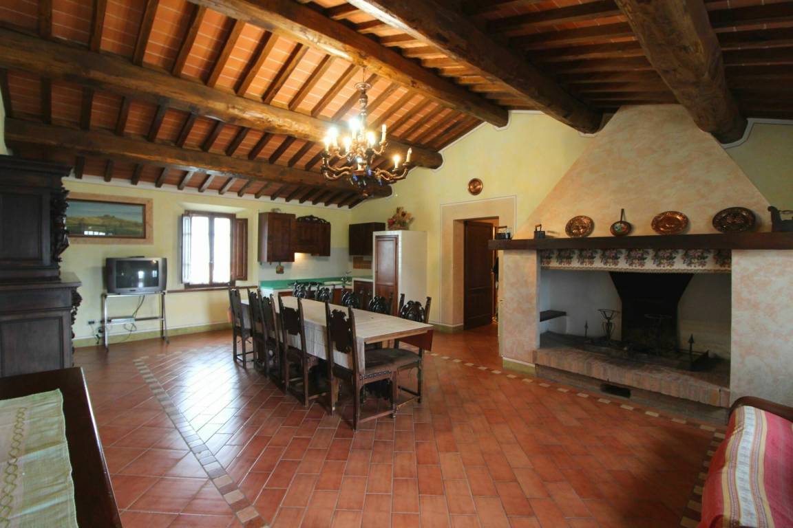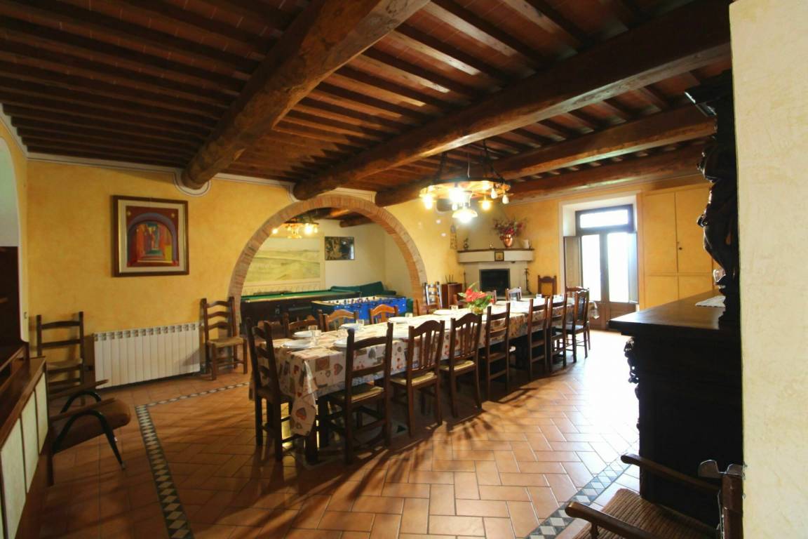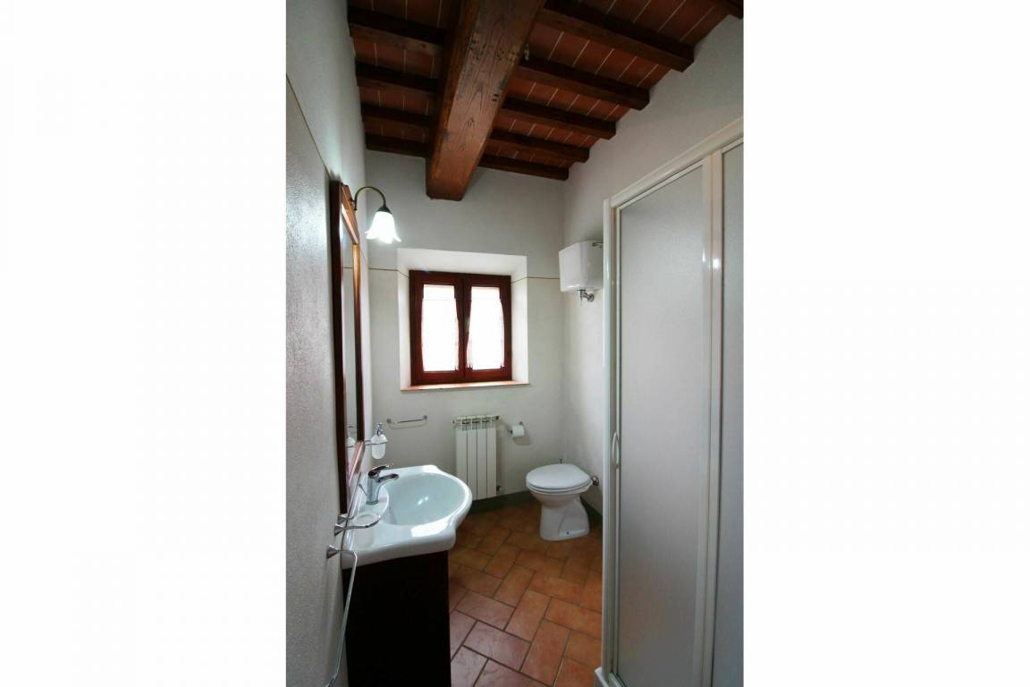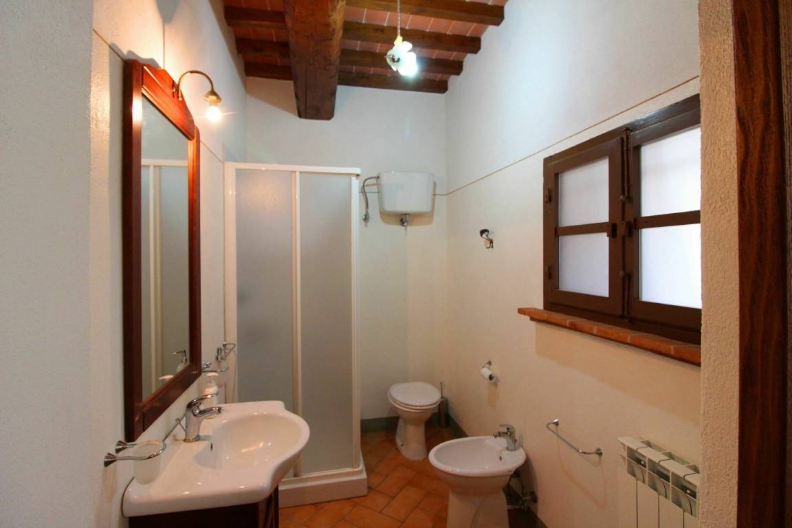 ERSTER STOCK: Eingang über eine Naturstein Außentreppe mit kleiner Panoramaloggia. Geräumige Wohnzimmer, großem Kamin und Sofa, 4 Doppelzimmer, Schlafzimmer mit französischem Bett (m. 1,40), zwei Badezimmer mit Dusche.