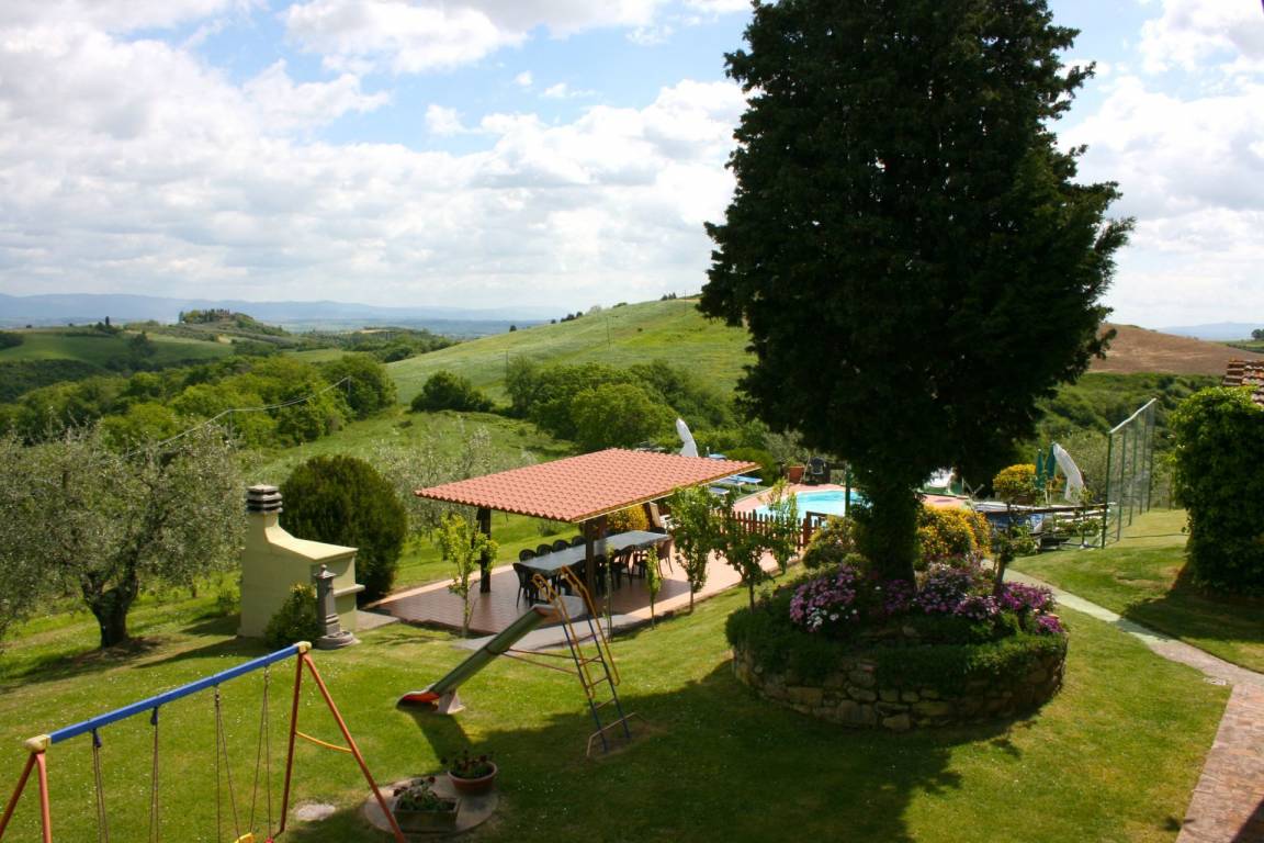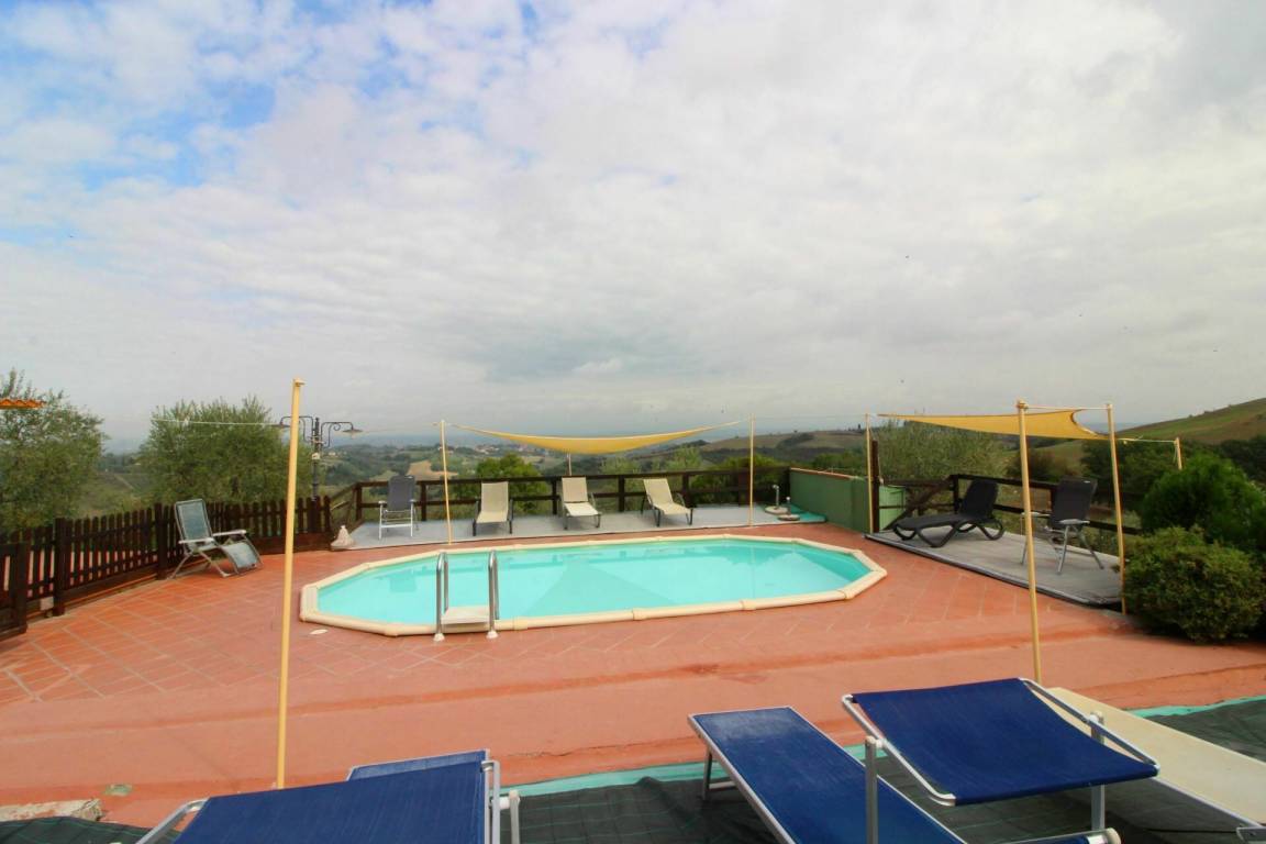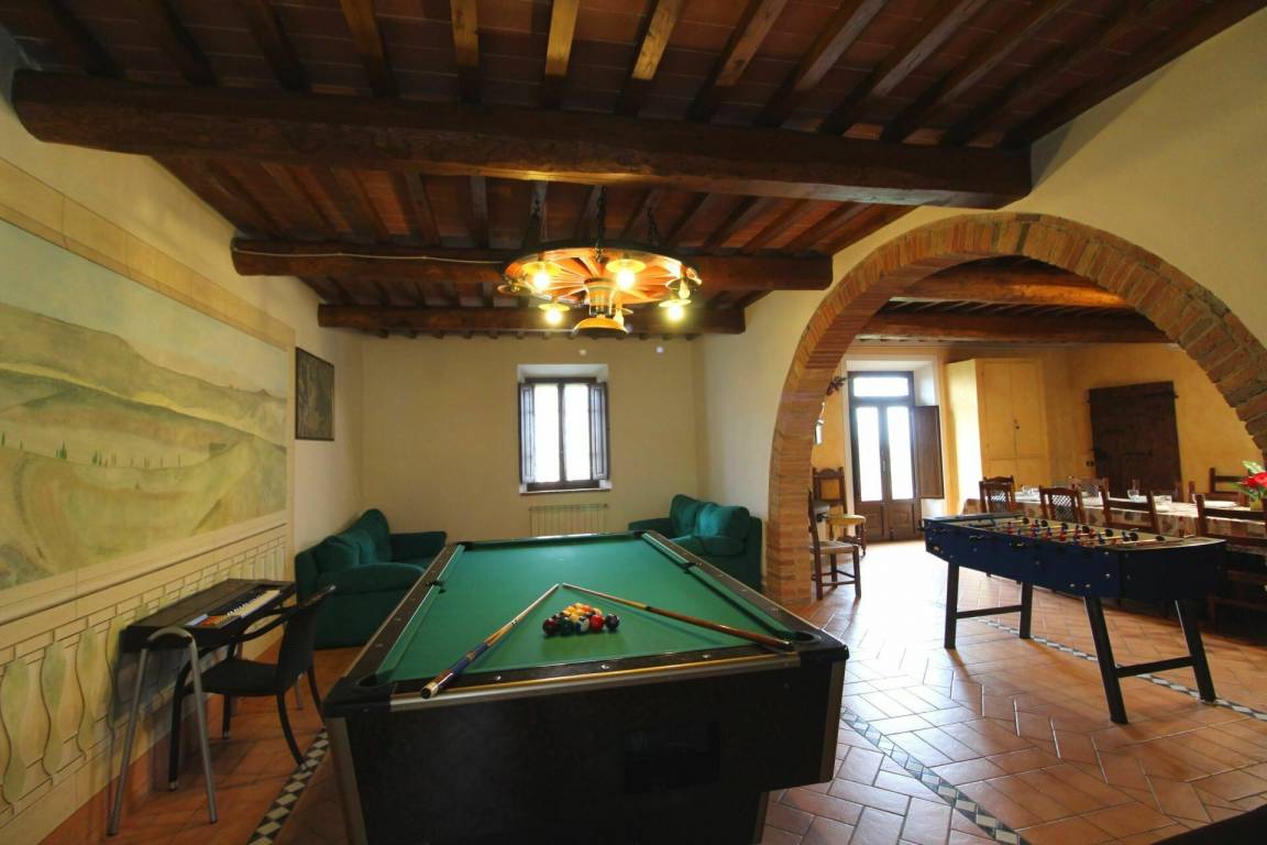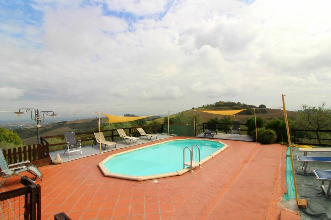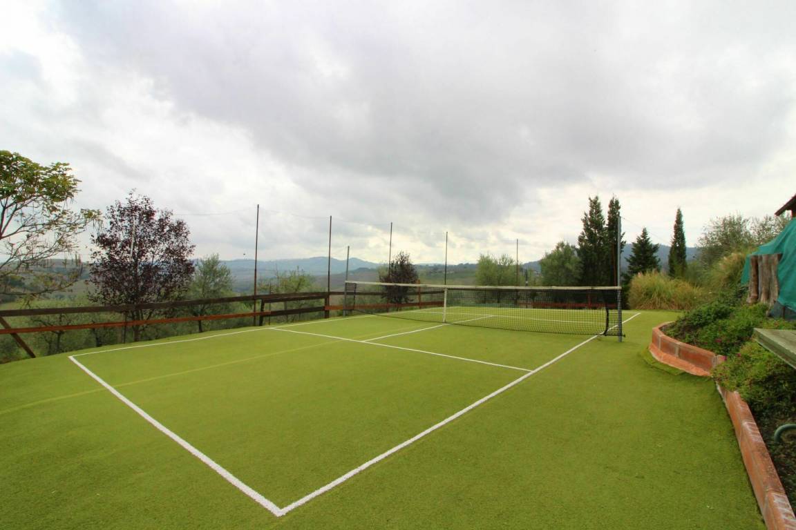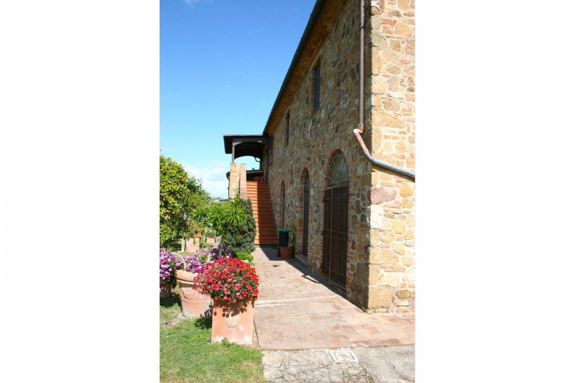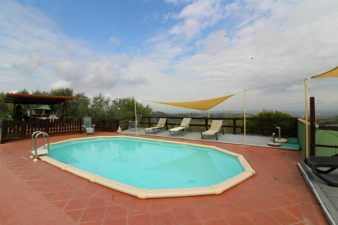 ERSTER STOCK: Eingang über eine Naturstein Außentreppe mit kleiner Panoramaloggia. Geräumige Wohnzimmer, großem Kamin und Sofa, 4 Doppelzimmer, Schlafzimmer mit französischem Bett (m. 1,40), zwei Badezimmer mit Dusche.