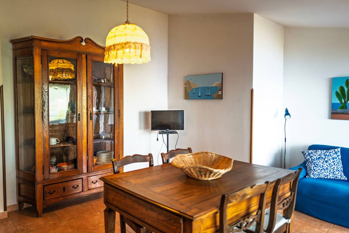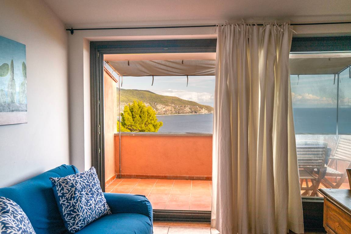 Charakteristisch sind die teils antiken Möbelstücke, die das Innere der Wohnung schmücken, wie auch die großen Fensterfronten zum Meer hin. Das Herzstück ist jedoch die kleine Terrasse, die von der Wohnküche und vom Doppelschlafzimmer aus zugänglich ist. Wer hier einmal Platz genommen hat, wird den Blick von dem einzigartigen Panorama nur schwer abwenden können.