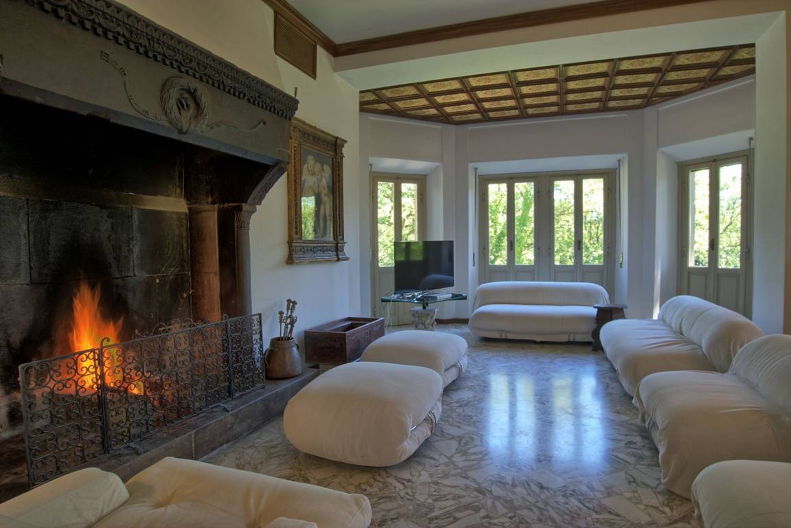 Wohnzimmer (40 m²): Kamin, Esstisch (Personen: 8), WiFi Internet, Satelliten-TV.
