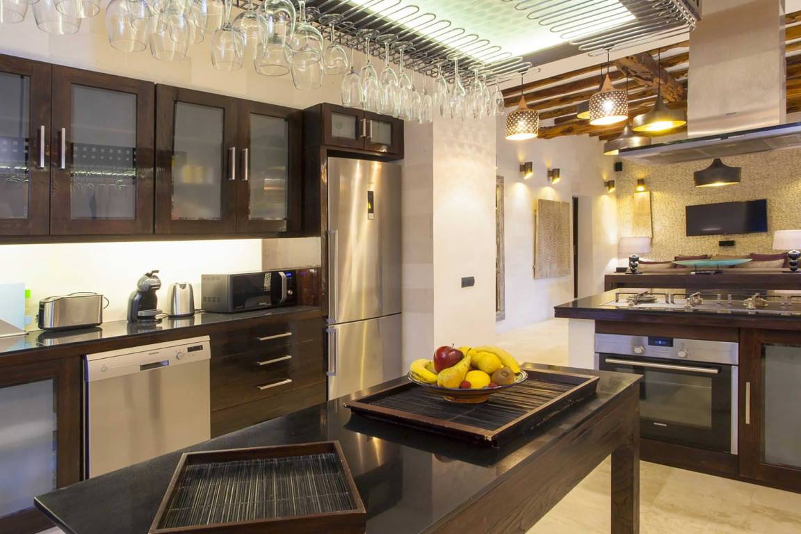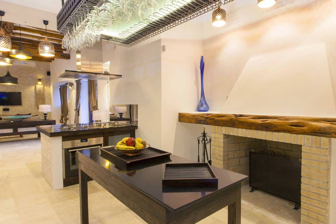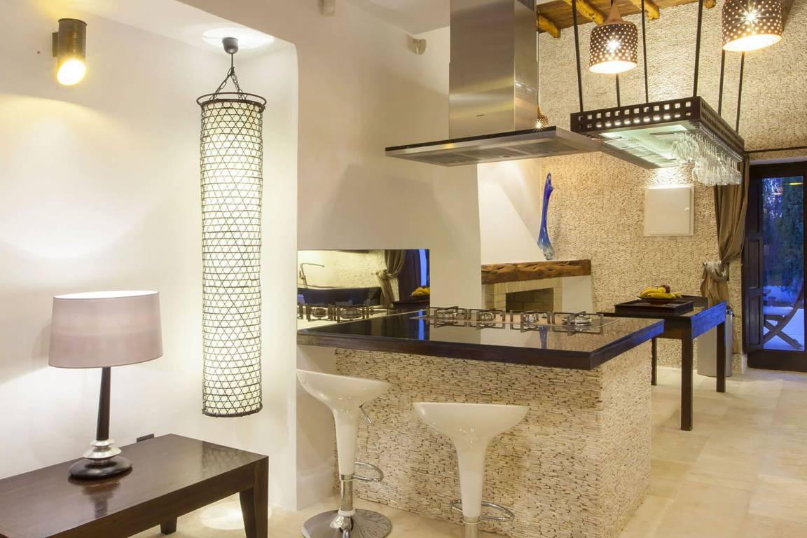 Die Küche verfügt über eine Geschirrspülmaschine und eine Mikrowelle. Die Klimatisierung erfolgt durch Klimaanlage und Heizung; eine Waschmaschine steht zur Verfügung. Das Fernsehen wird durch einen Fernseher mit Satellitenempfang gewährleistet. Die Villa ist mit einem Kamin mit offenem Herd, einem Grillbereich, einer privaten Terrasse und einem privaten Garten ausgestattet.