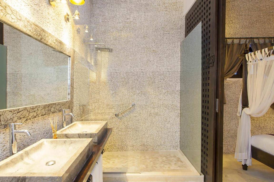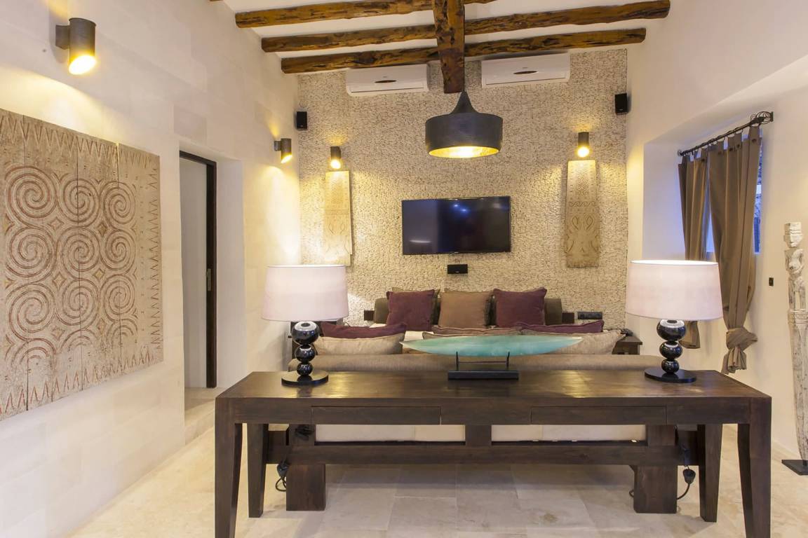 Die Villa umfasst 4 Schlafzimmer und 4 Bäder und bietet Platz für bis zu 8 Gäste. Die Räumlichkeiten sind großzügig geschnitten und verbinden Wohn-, Ess- und Schlafbereiche in fließender Anordnung. Jedes Schlafzimmer ist sorgfältig möbliert.