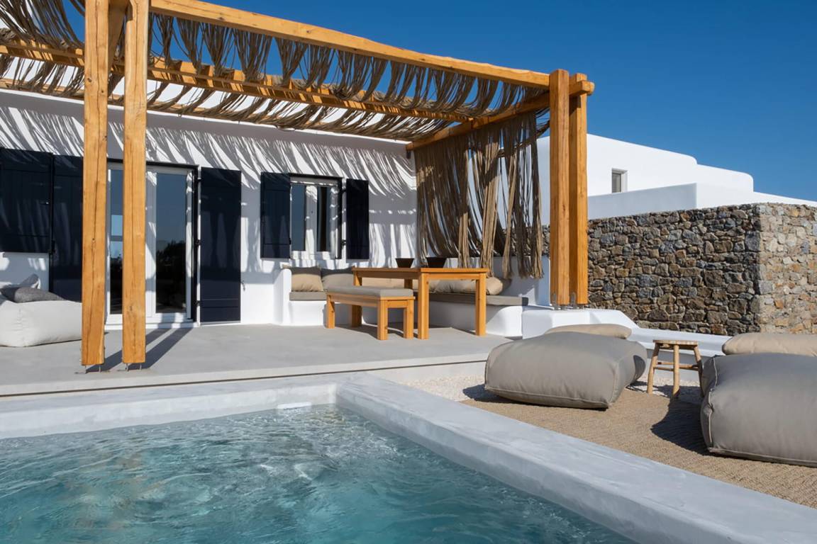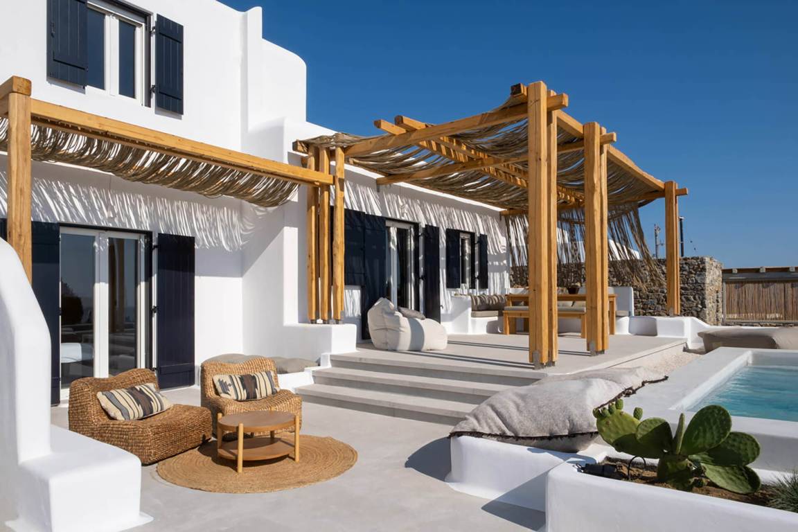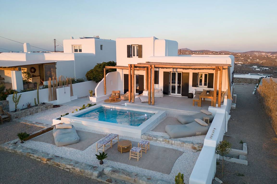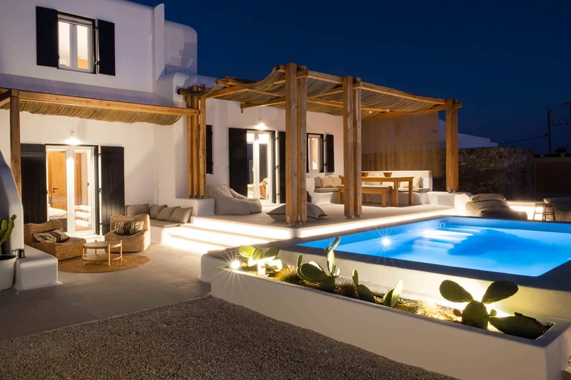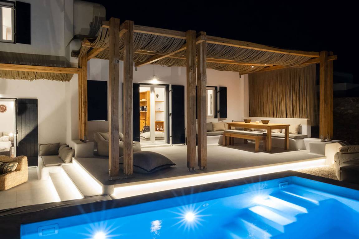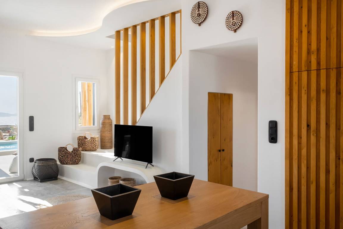 Die Villa erstreckt sich über mehrere Geschosse und bietet Platz für bis zu 8 Gäste. Sie verfügt über 3 Schlafzimmer und 3 Badezimmer. Die Wohnbereiche sind hell und offen gestaltet und führen zu den Außenbereichen.