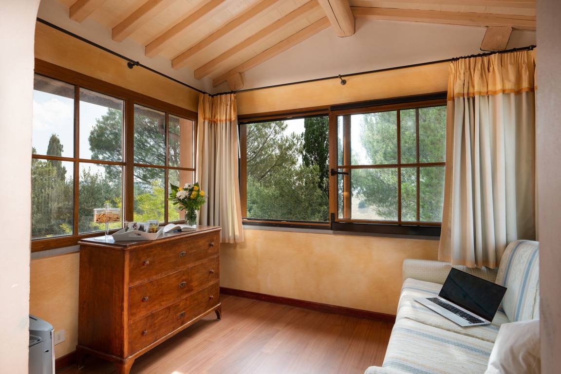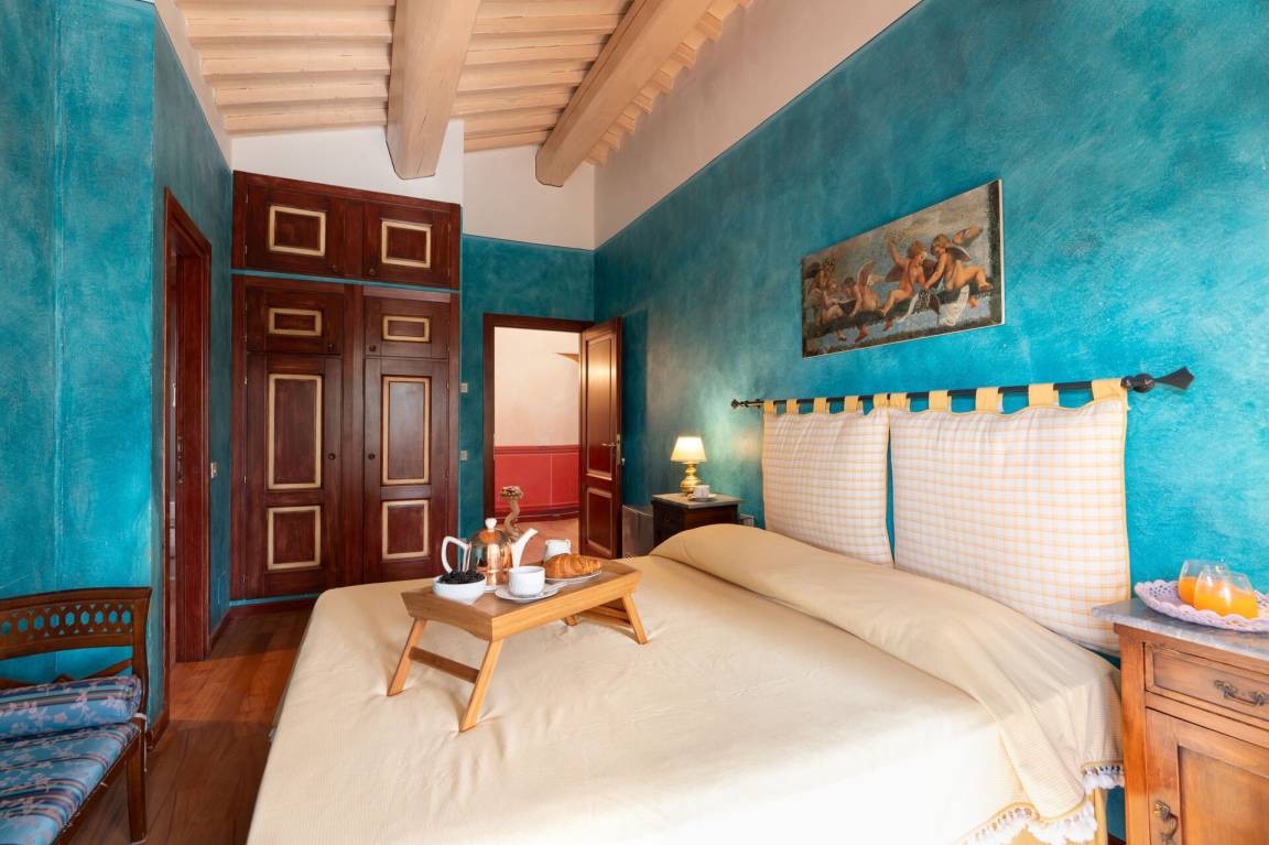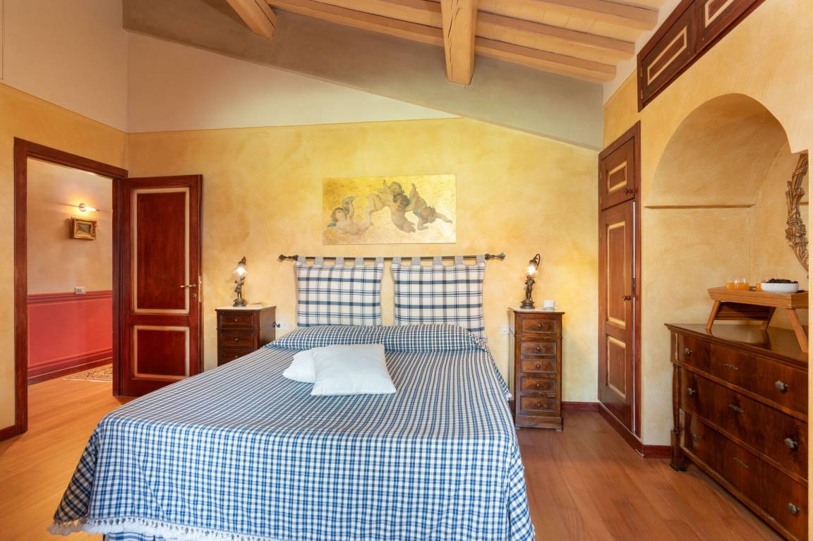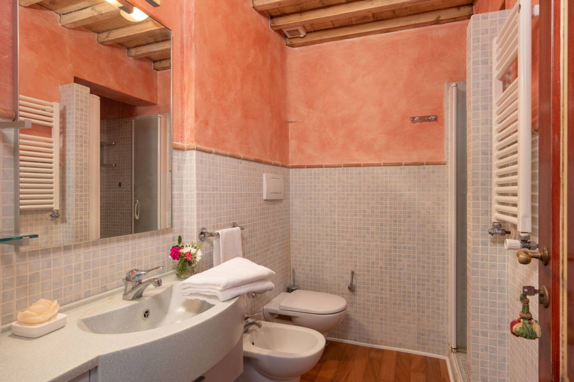 Schlafzimmer mit Bad 6 (14.85 m²): Doppelbett, WiFi Internet, Klimaanlage, Safe, Waschbecken, WC, Bidet, Dusche.
