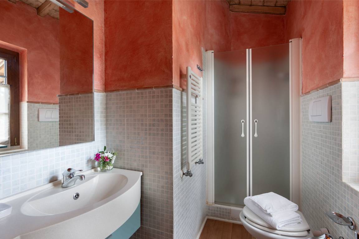 Badezimmer 2: Waschbecken, WC, Bidet, Dusche.