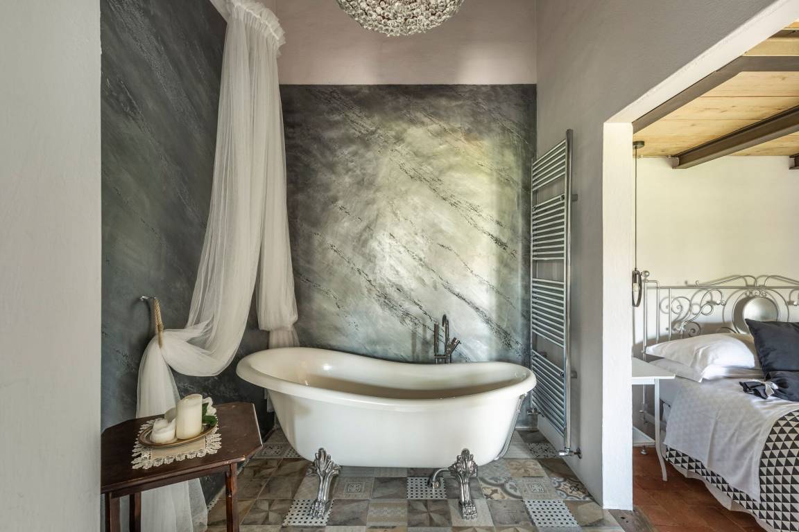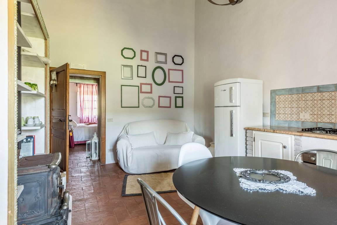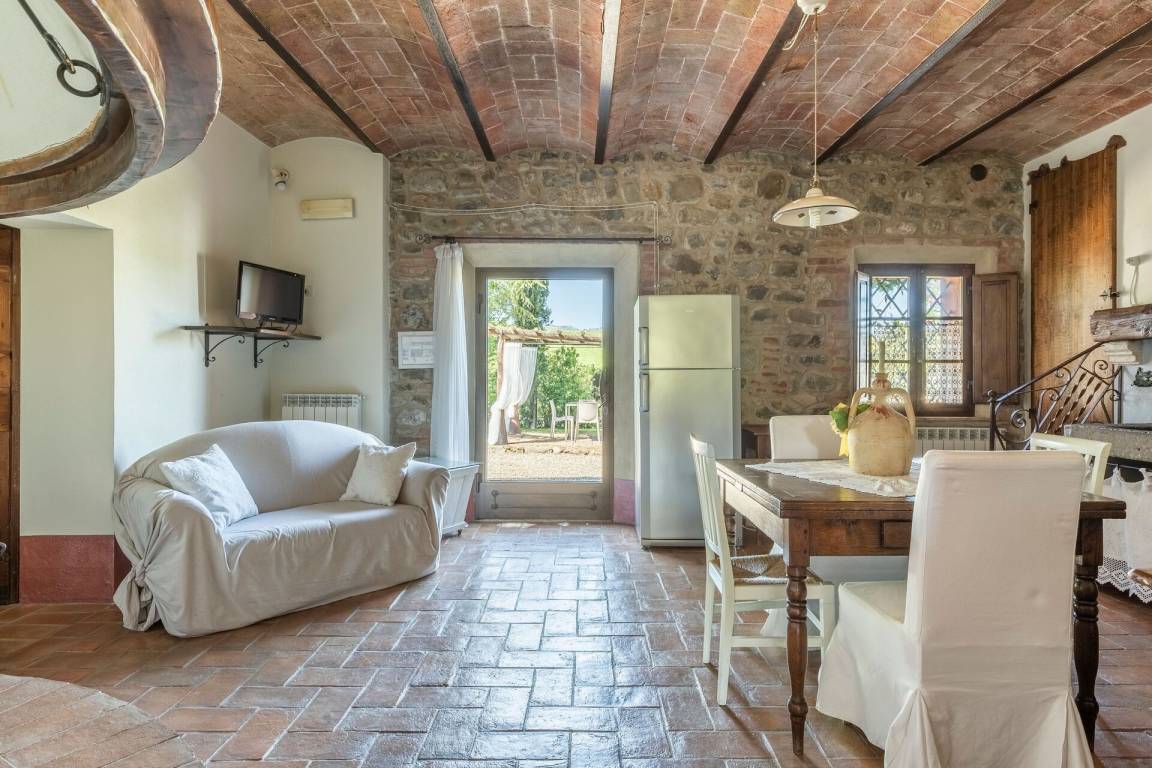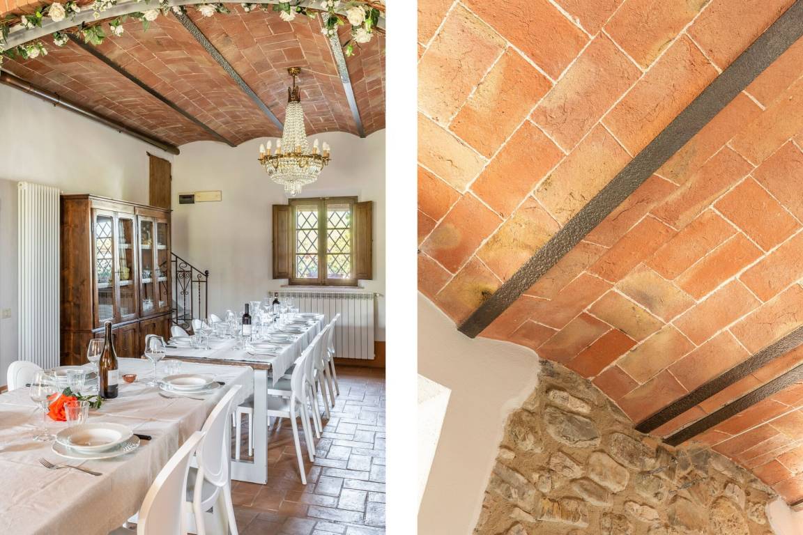 Erdgeschoss: Wohnzimmer mit Kamin, 2 Doppelzimmer, beide mit privatem Bad mit Dusche und direktem Zugang nach draußen, Zimmer mit Doppelbett und 1 Einzelbett (im Dachgeschoss) mit privatem Bad mit Dusche und direktem Zugang nach draußen, Doppelzimmer mit privatem Bad mit Dusche und Dachgeschoss mit 2 Einzelbetten, Wohnzimmer mit Kamin, Hauptwohnzimmer mit Essbereich, Kamin, Tischen, Sofas und Küche (Backofen, Mikrowelle, Geschirrspüler, 2 Kühlschränke mit Gefrierfach, Toaster, Zitruspresse, Mixer, Blender, Mokkakanne, amerikanische Kaffeemaschine, Espressomaschine „Lavazza" mit Kapseln), WC.