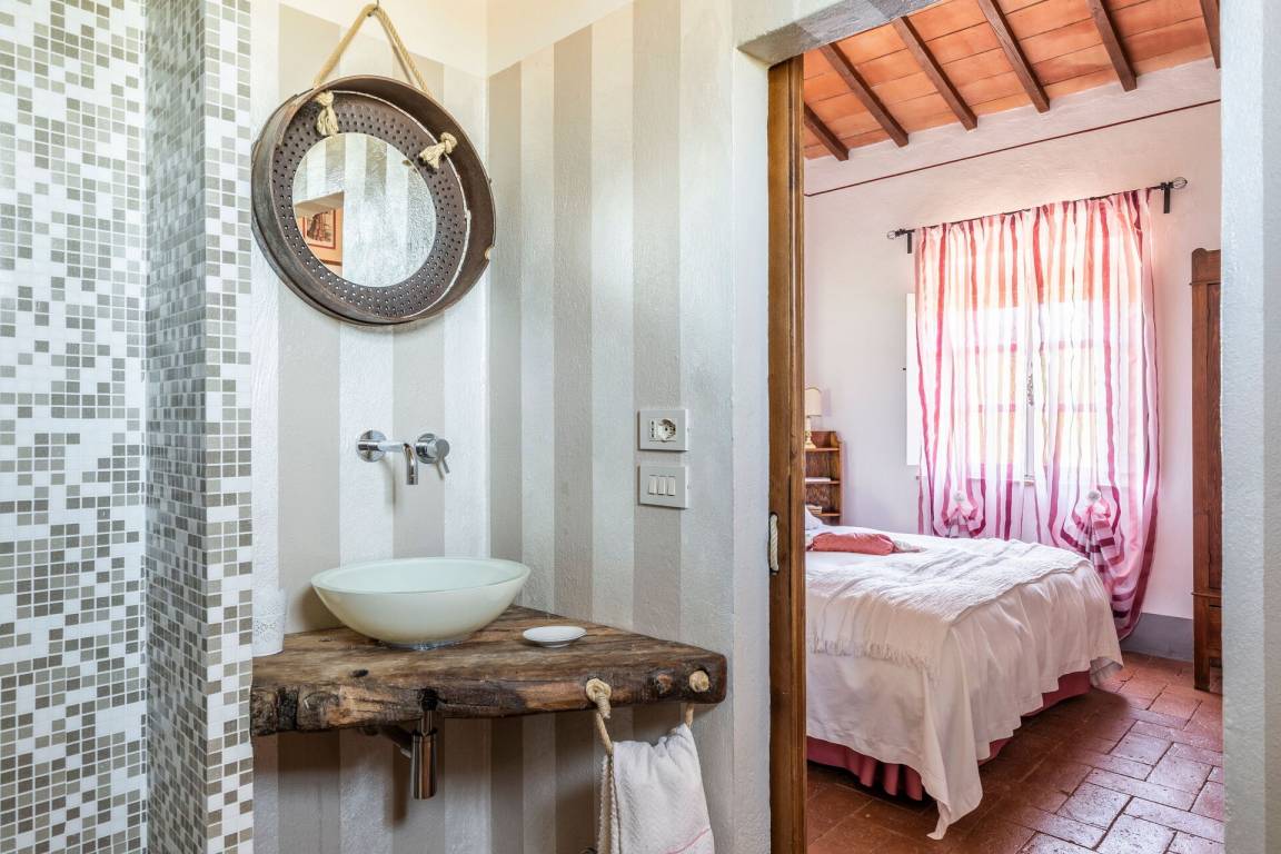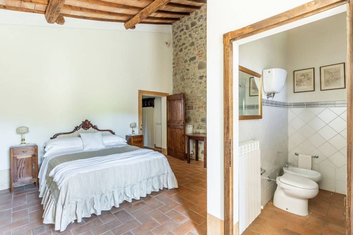Erster Stock: Wohnzimmer, Doppelzimmer mit privatem Bad mit Dusche, Zimmer mit Doppelbett und 1 Einzelbett (auf dem Dachboden), privatem Bad mit Dusche und Badewanne (im Zimmer).